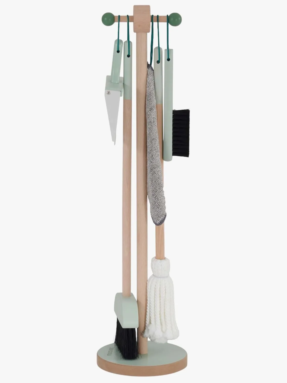 – Indeholder: 1 børste, 1 fejekost, 1 aftørringsklud, 1 fejebakke, 1 moppe, 1 stander.
