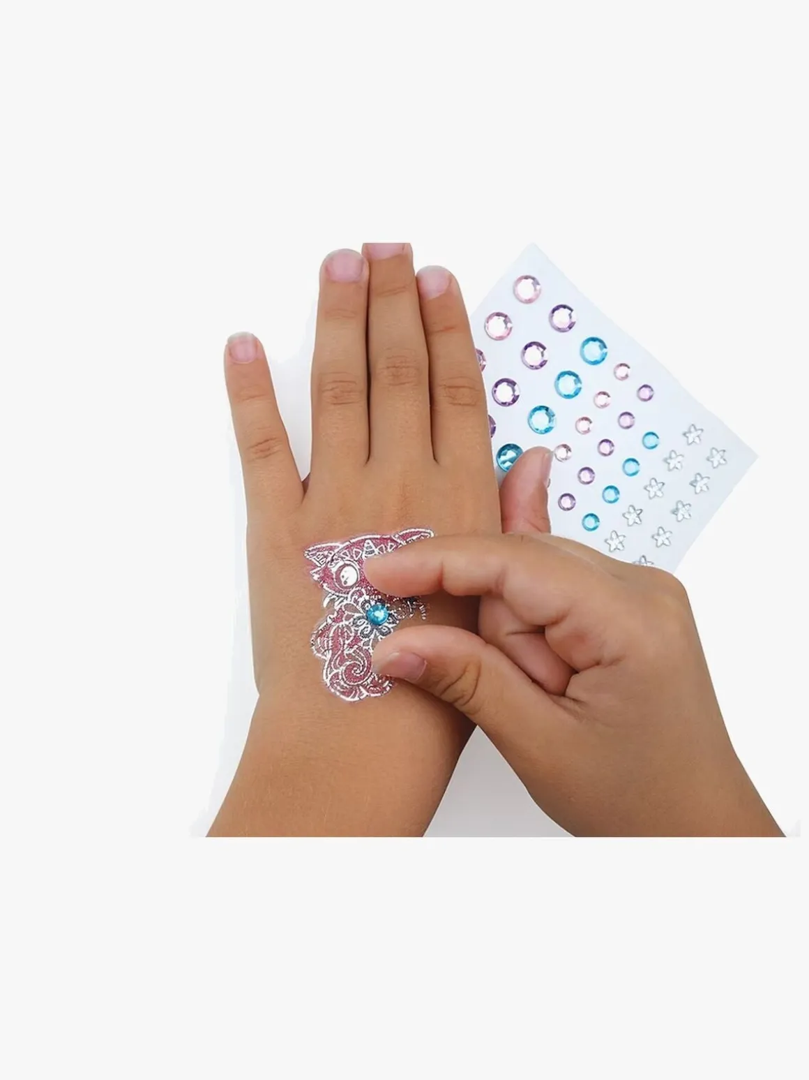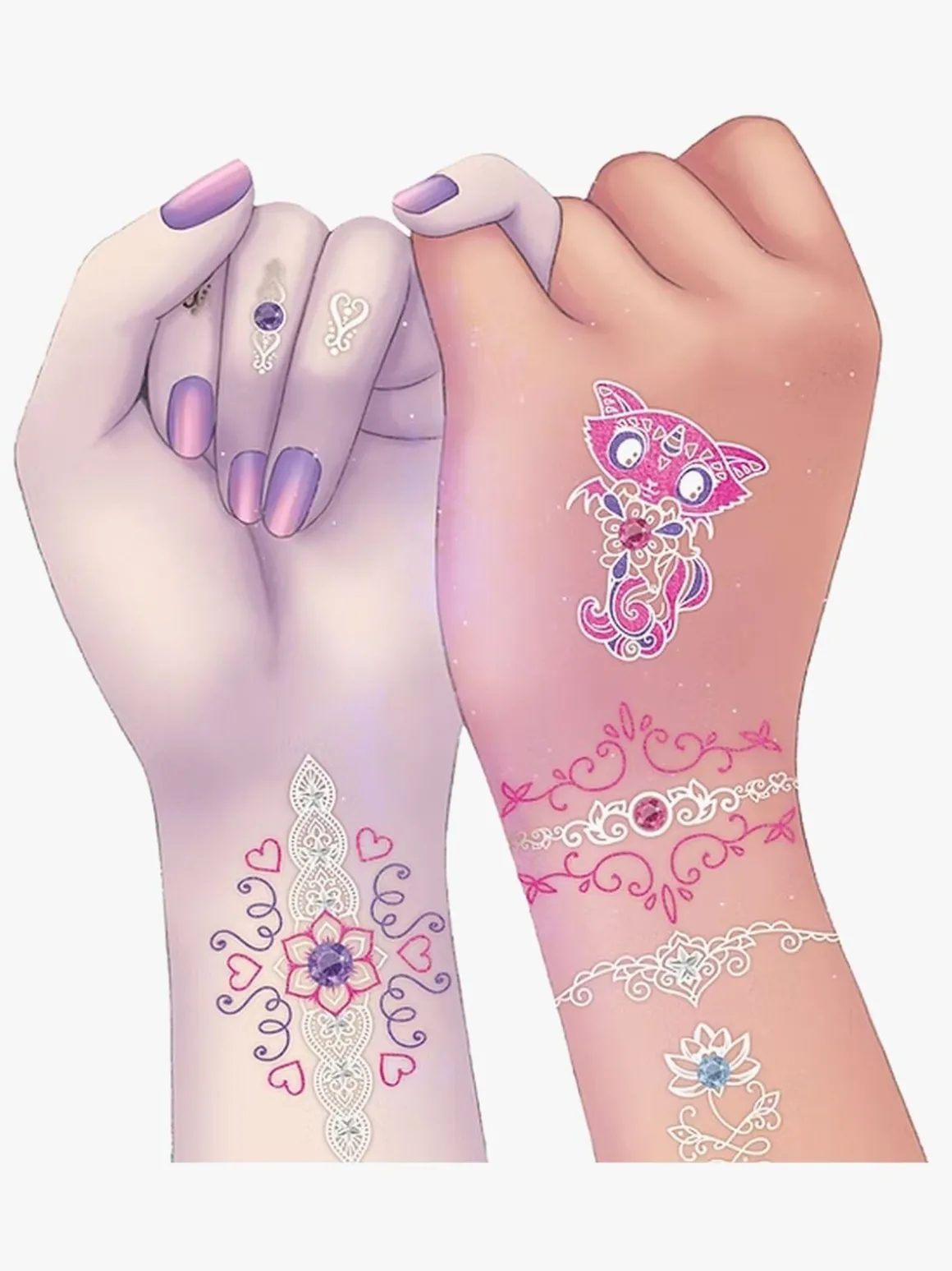 – Indeholder: 40 tatoveringer, 37 ædelsten, 2 tatoveringspenne, 1 bodyshimmer, 1 instruktionsbog.
