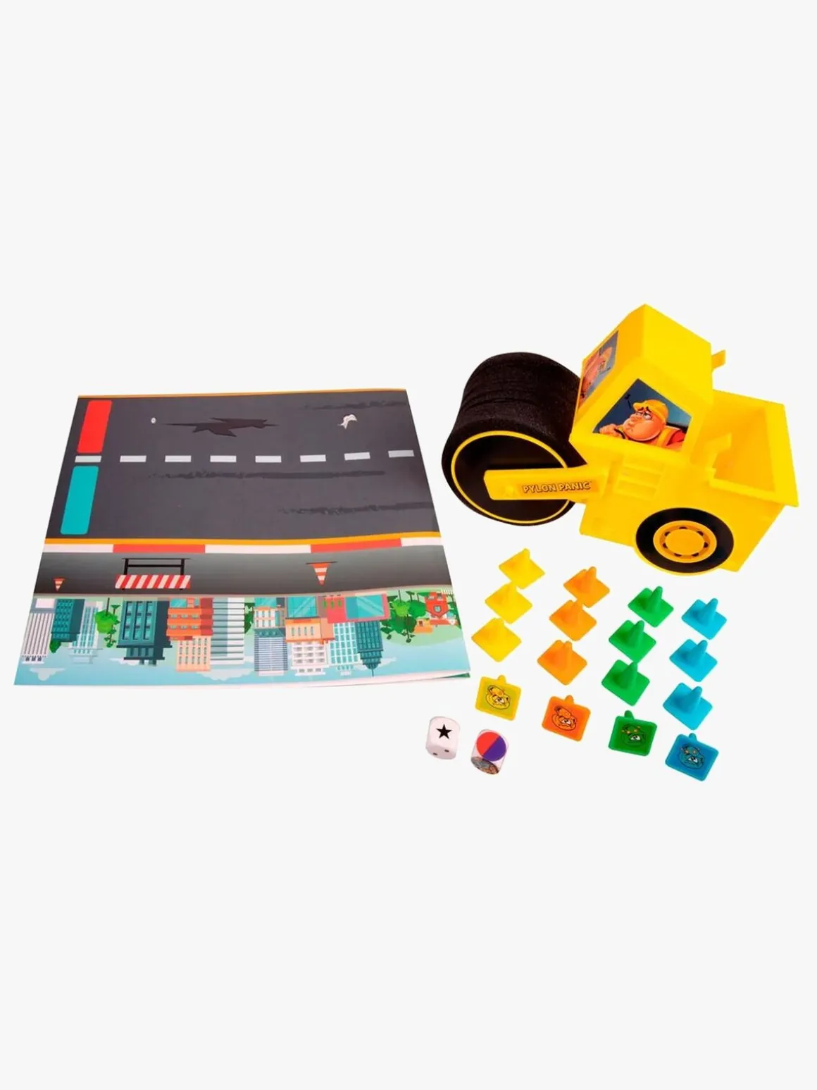 – Indeholder: 1 spillebræt, 2 terninger, 16 kegler, 1 vej-rulle.