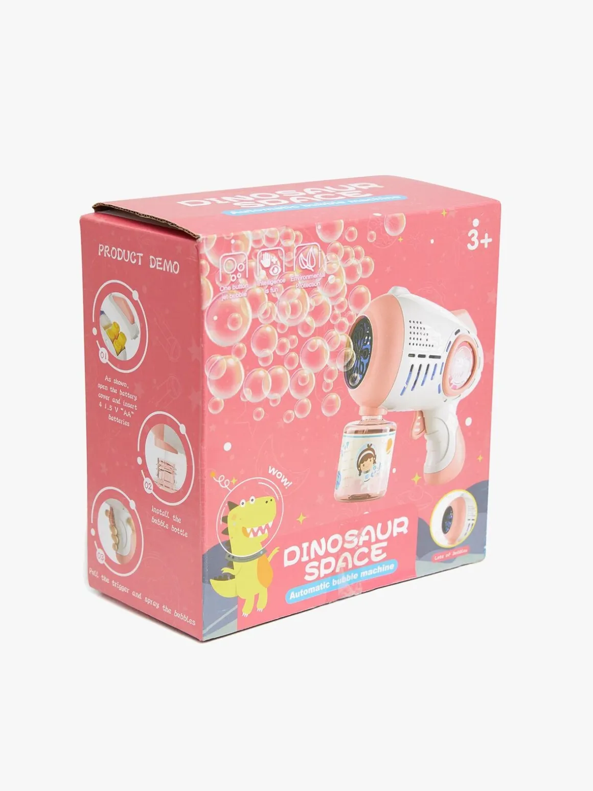 – Indeholder en sæbeboblepistol og en sæbebobleflaske.