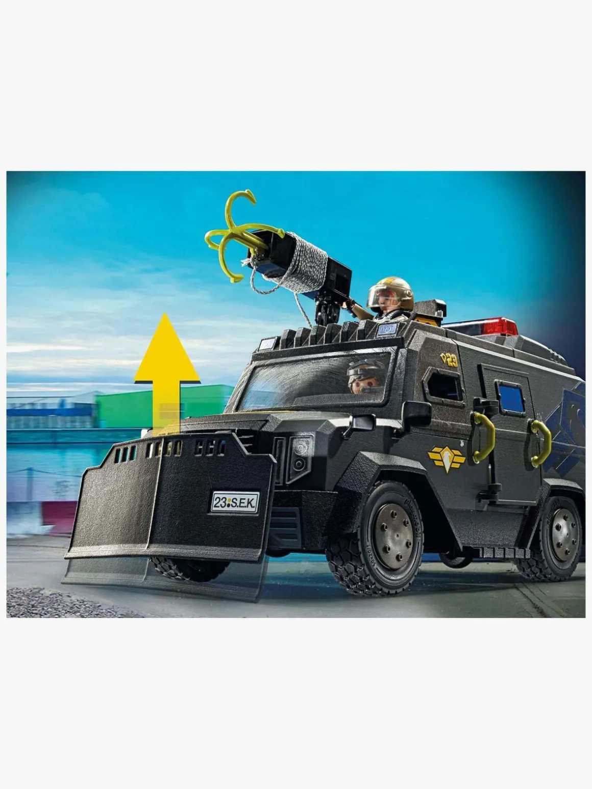 – Indeholder: To Playmobil-politifolk, en ATV med lys- og lydmodul samt masser af opbevaringsplads og spændende SWAT-tilbehør.