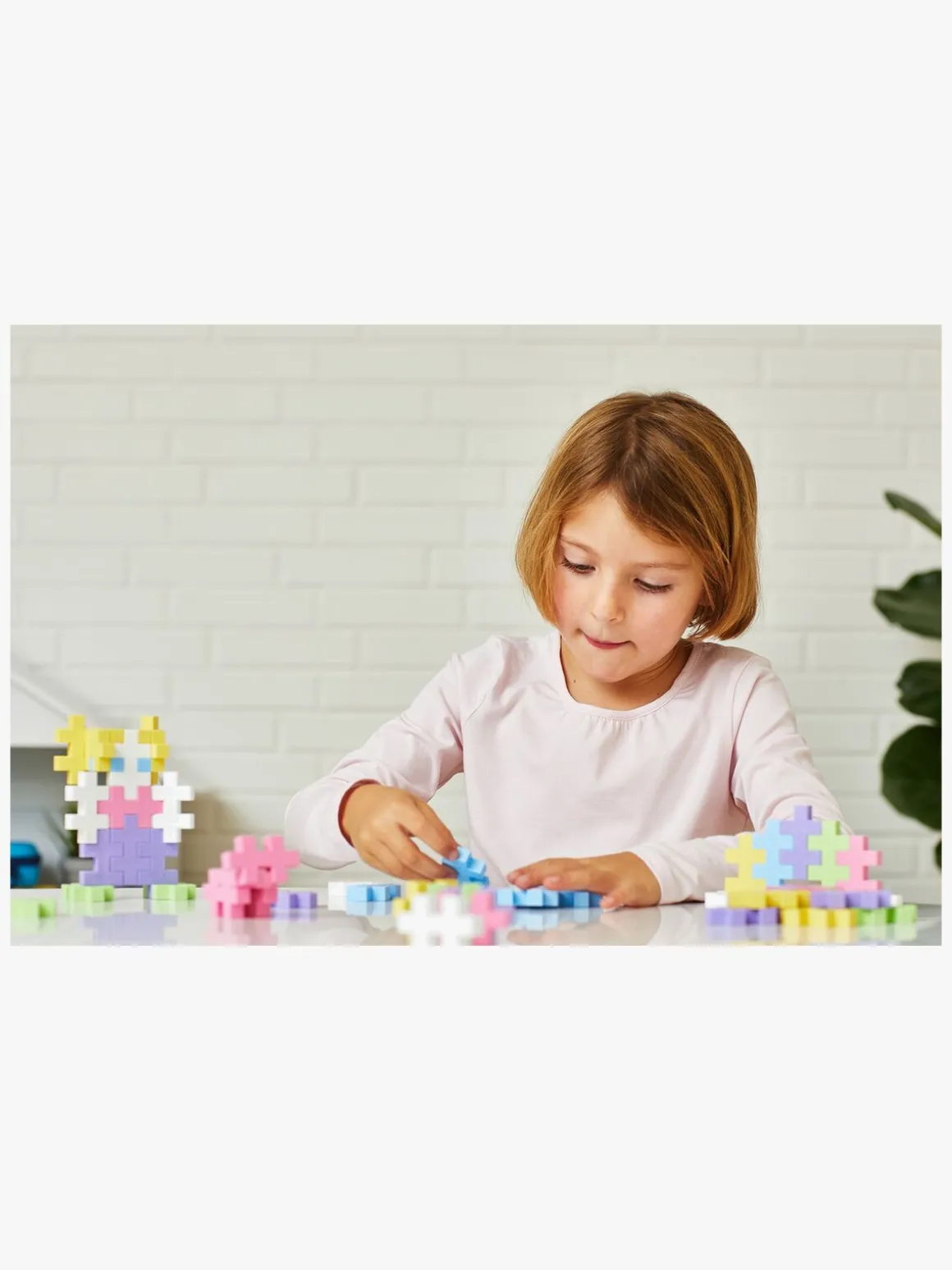 Plus Plus-byggesæt fås i forskellige størrelser, farvekombinationer og motiver.