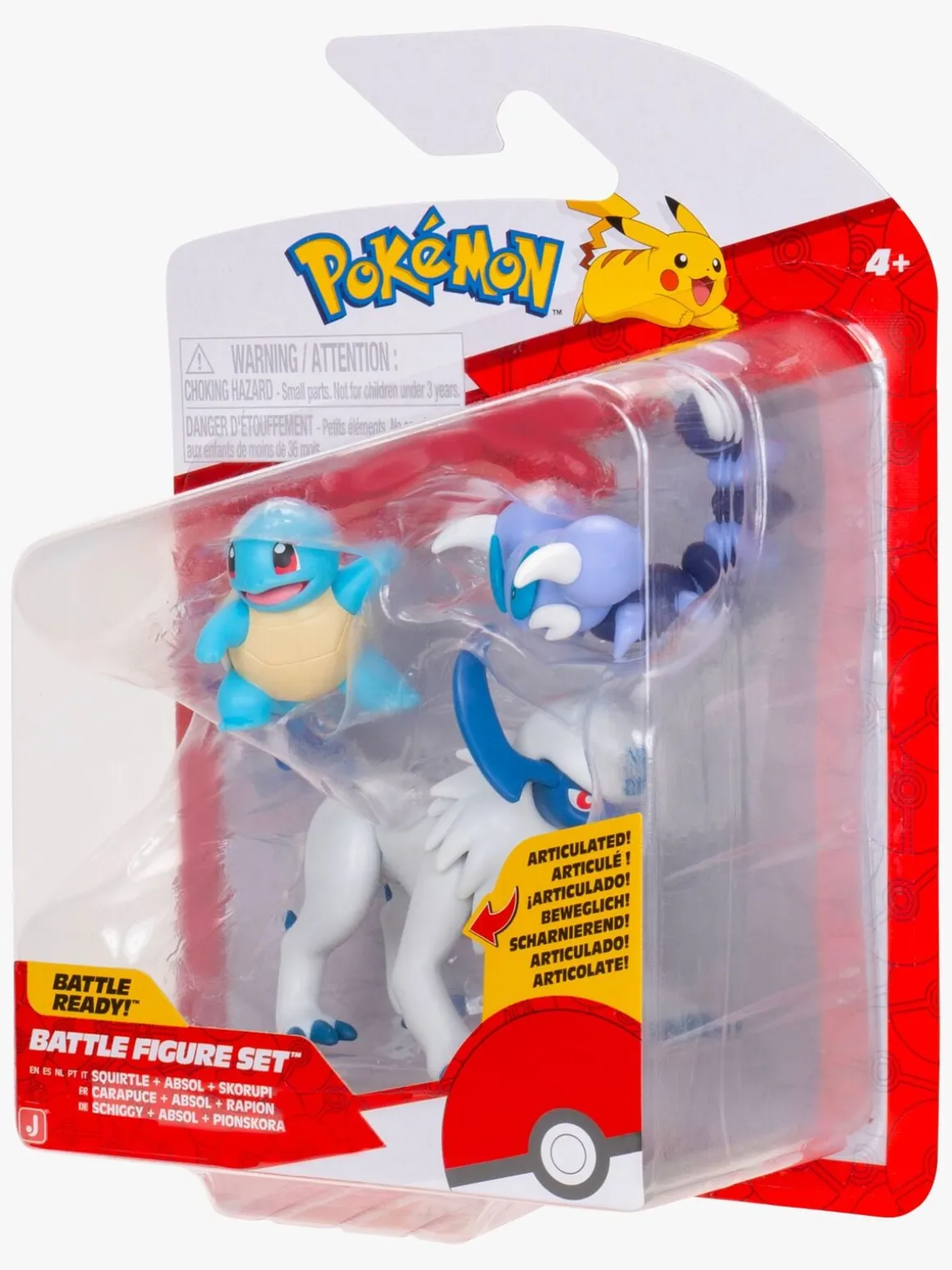 – Indeholder 1 Squirtle-figur, 1 Absol-figur og 1 Skorupi-figur.