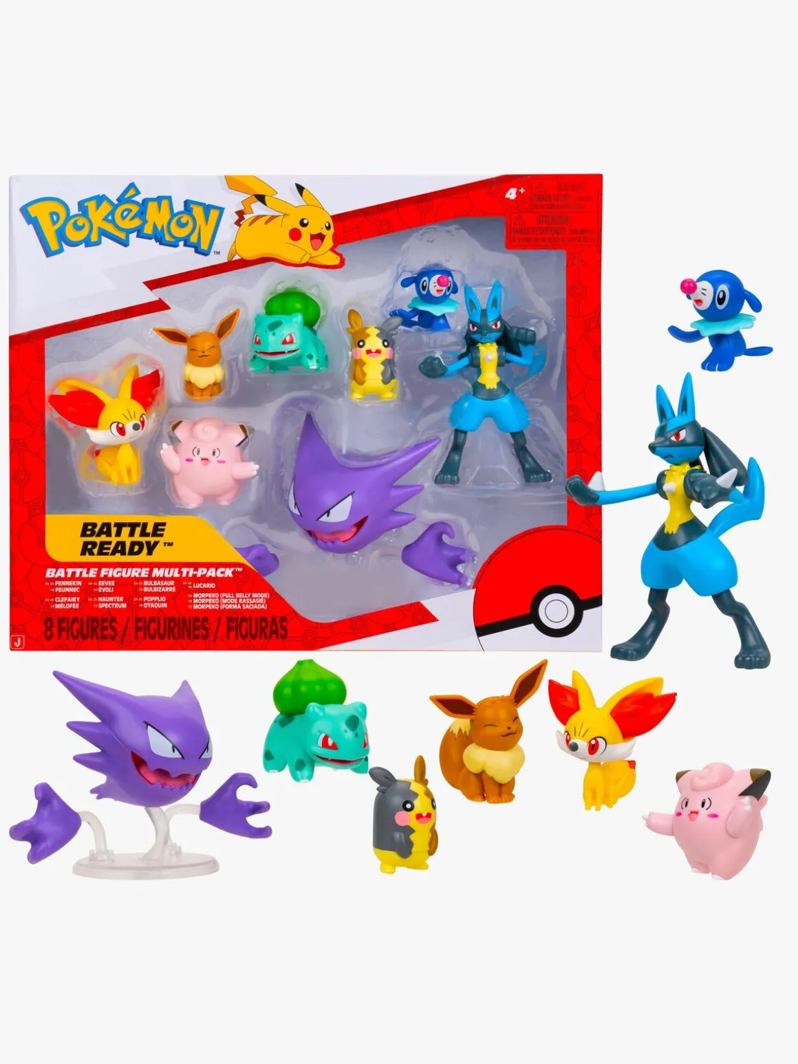 – Indeholder: 1 Fennekin, 1 Eevee, 1 Bulbasaur, 1 Lucario, 1 Clefairy, 1 Haunter, 1 Popplio & 1 Morpeko.