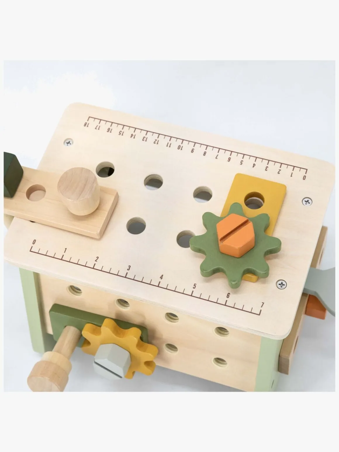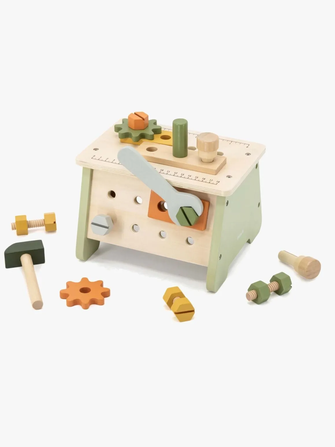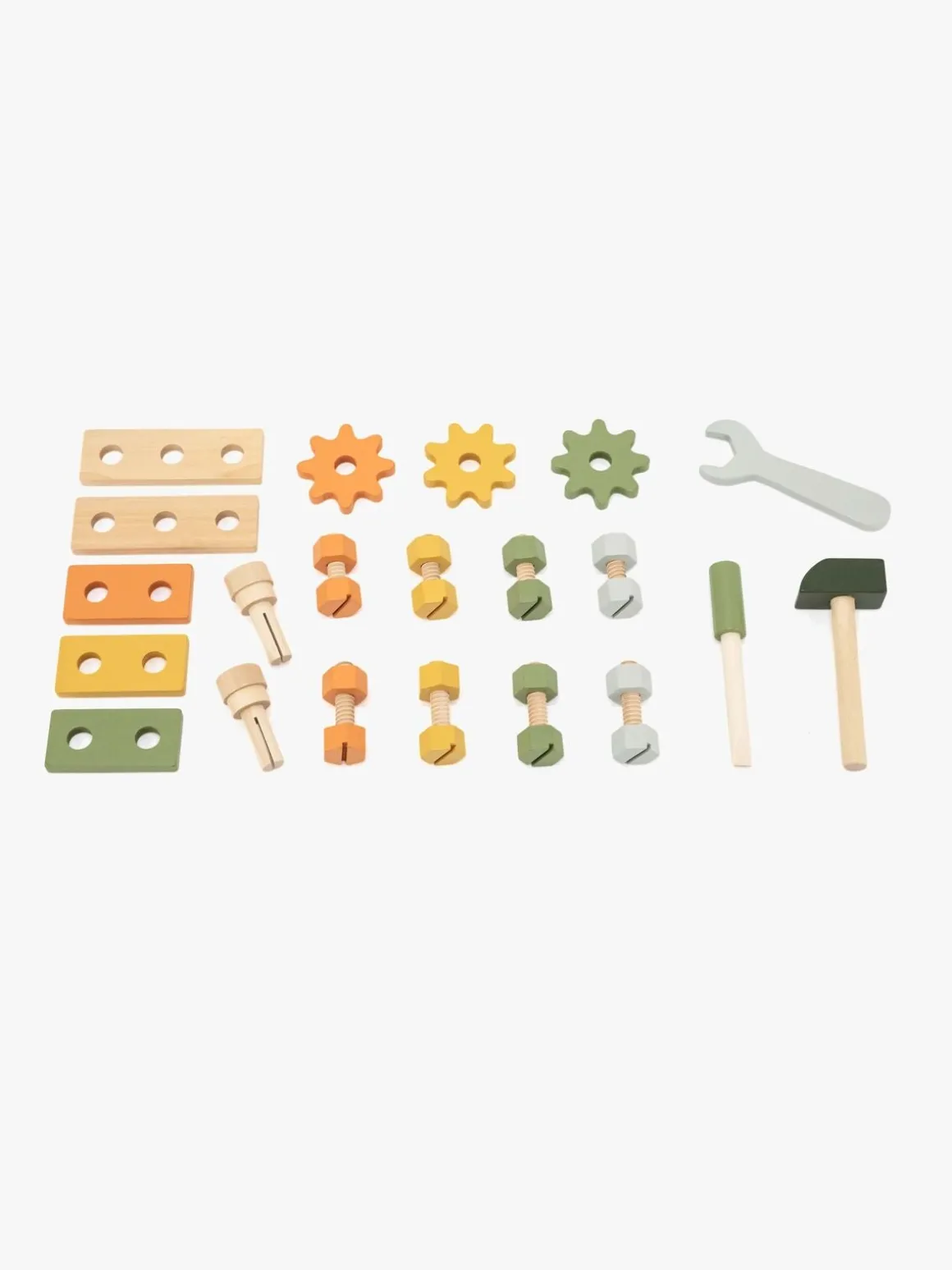 – Indeholder: 1 hammer, 1 skruetrækker, 1 skruenøgle, 3 tandhjul, 5 byggeklodser, 10 møtrikker.