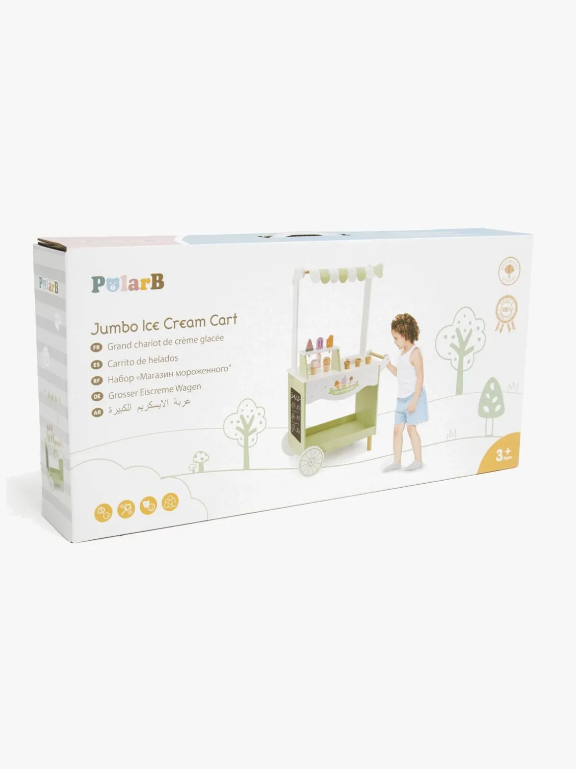 – Indeholder en isvogn med flere forskellige slags iskugler, vafler, pindeis, jordbærtopping og en isske.