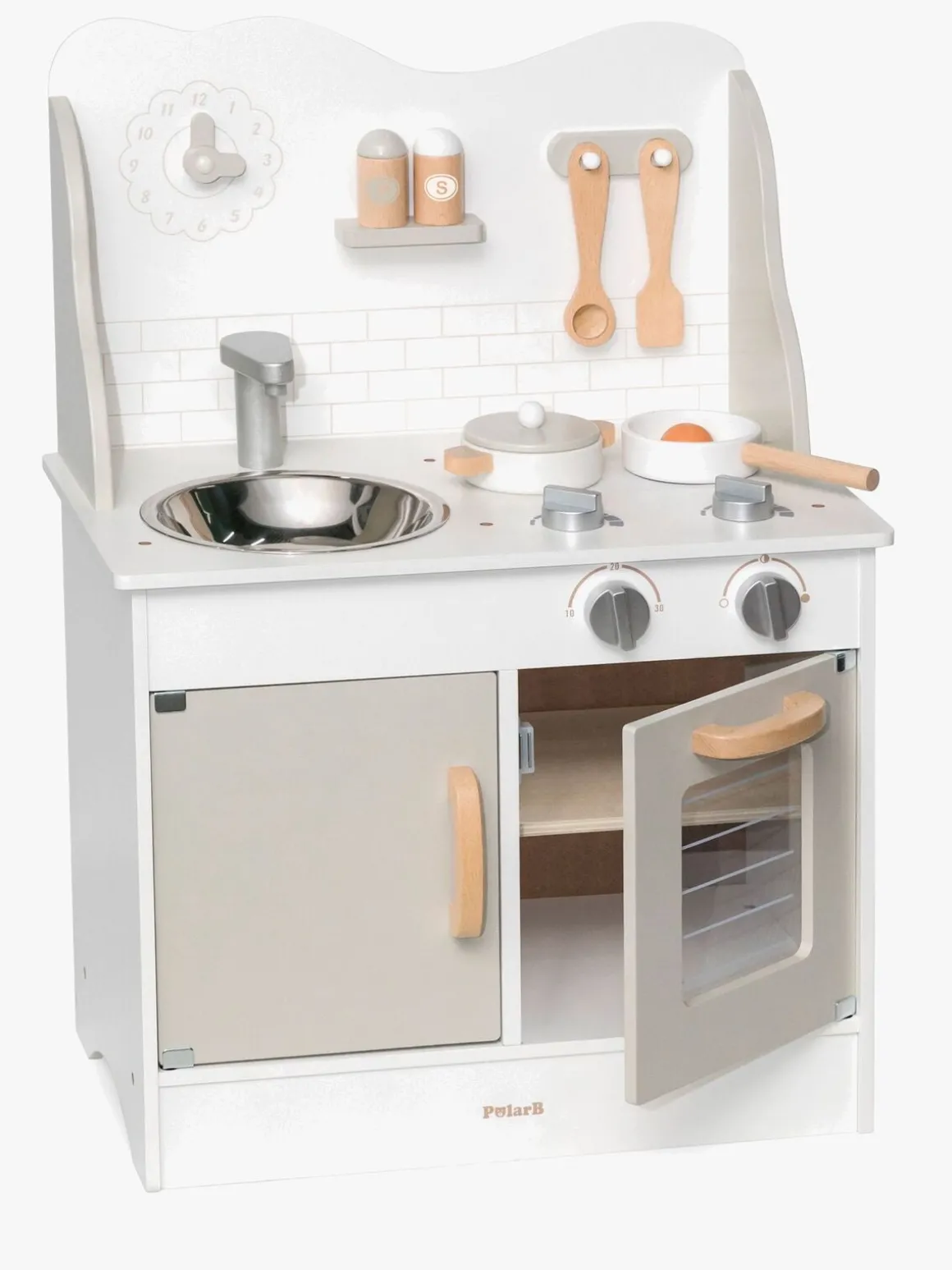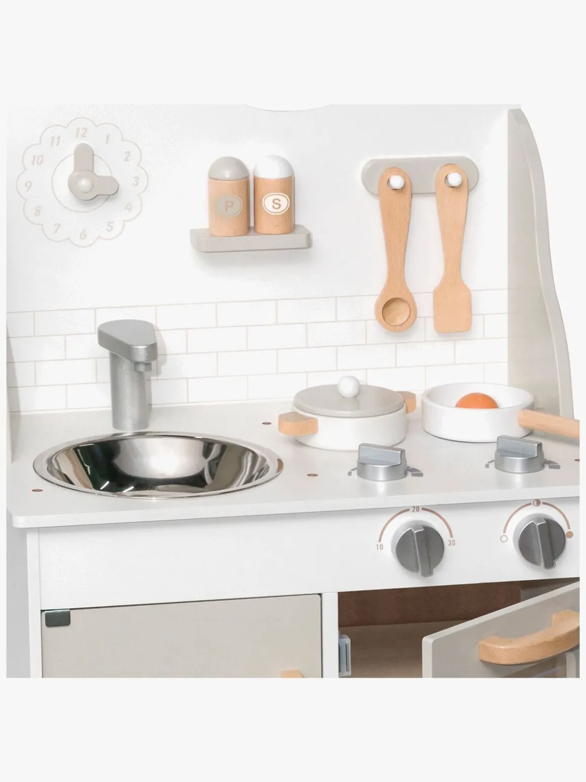 – Indeholder: 1 legekøkken, 1 stegepande, 1 spejlæg, 1 salatskål, 1 peberkværn, 1 gryde, 1 paletkniv, 1 grydeske.