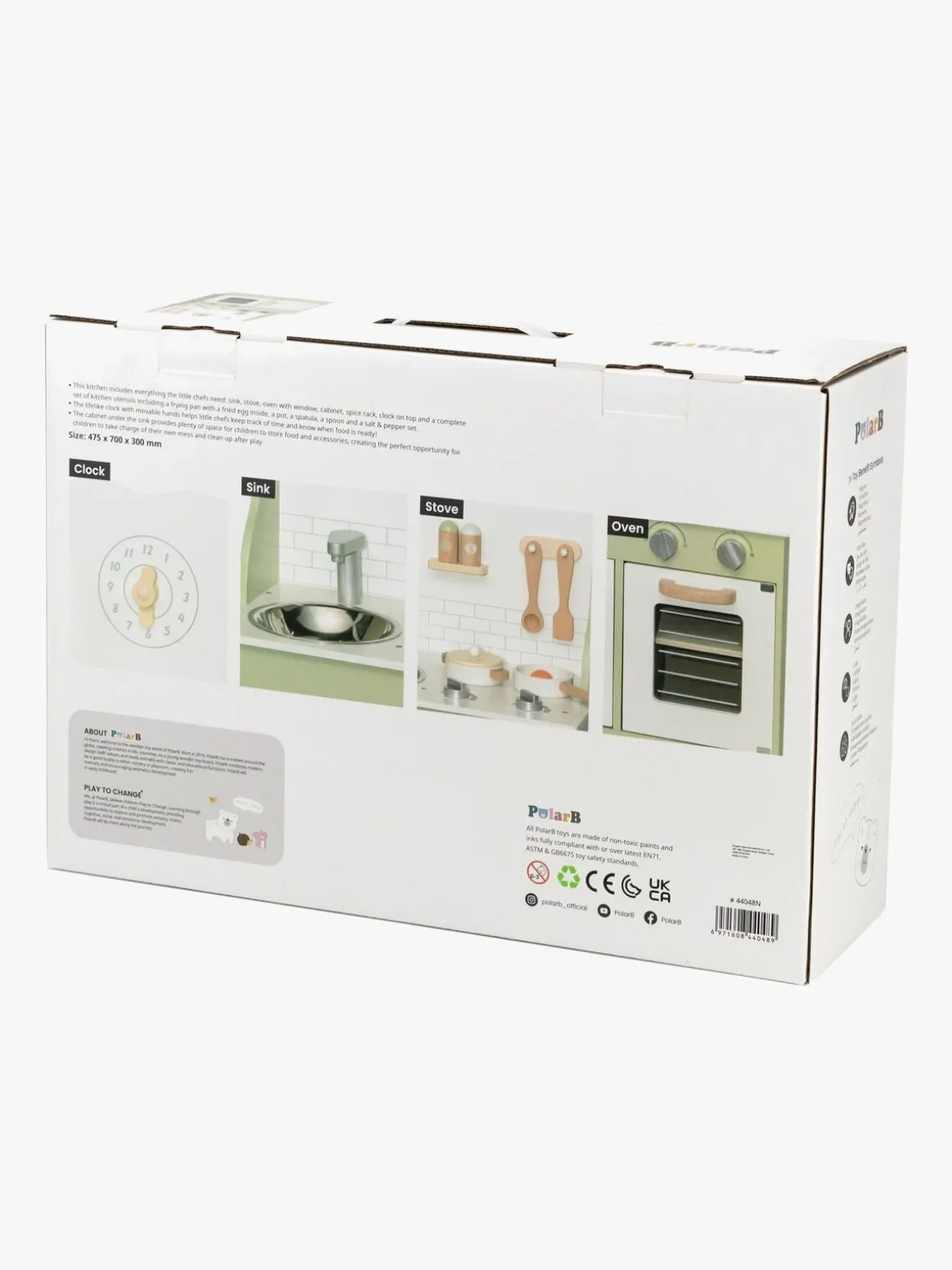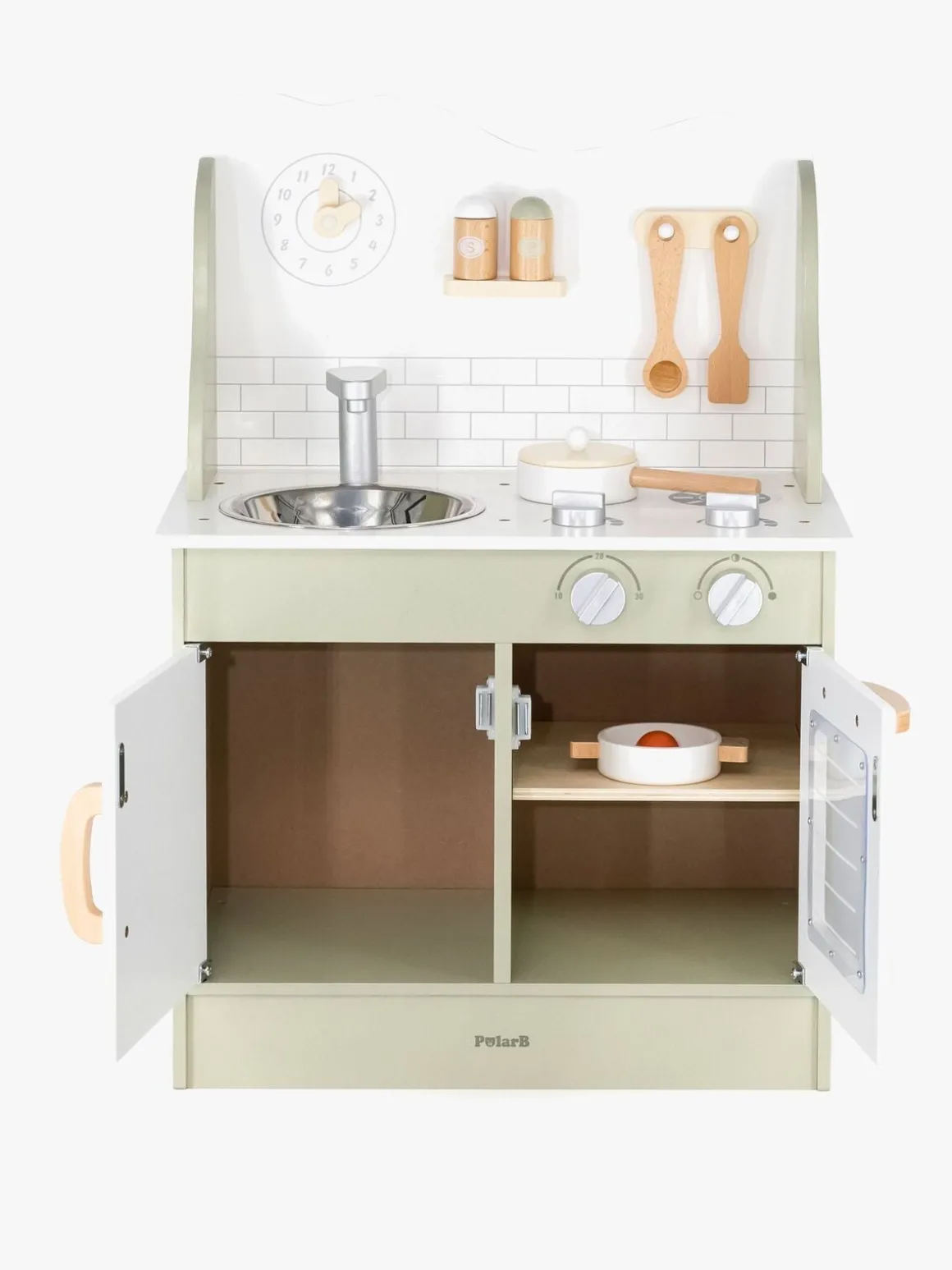 – Indeholder: 1 legekøkken, 1 stegepande, 1 gryde med et låg, 1 paletkniv, 1 grydeske, 1 salt- og pebersæt, 1 spejlæg.