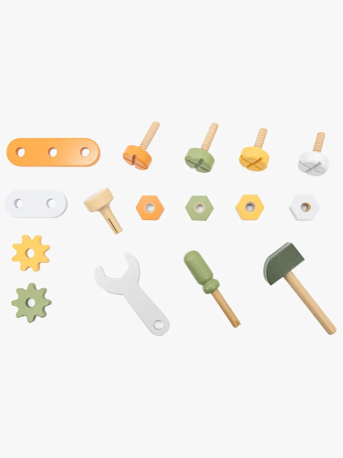 – Indeholder: 1 værktøjskasse, 1 hammer, 1 skruetrækker, 1 skruenøgle, 5 bolte, 4 møtrikker, 2 tandhjul, 2 byggeplader.