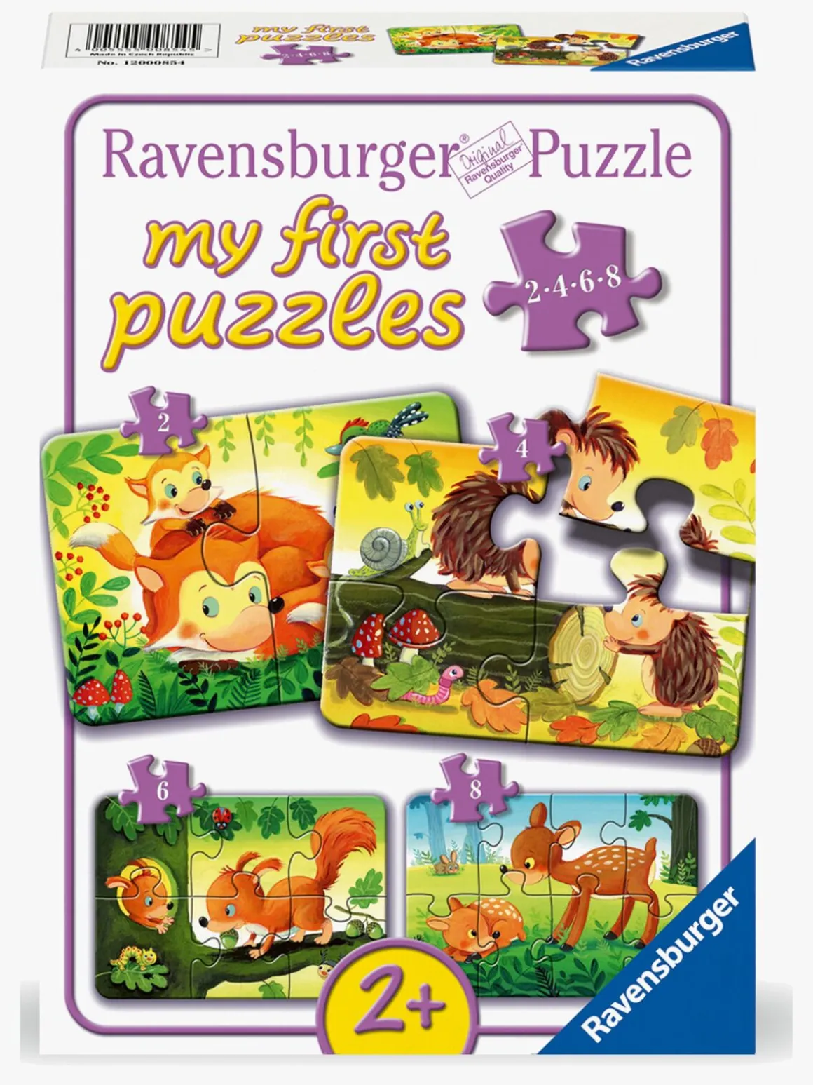 – Indeholder 4 puslespil med 2, 4, 6 og 8 brikker.