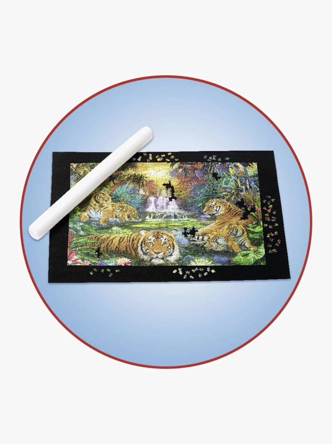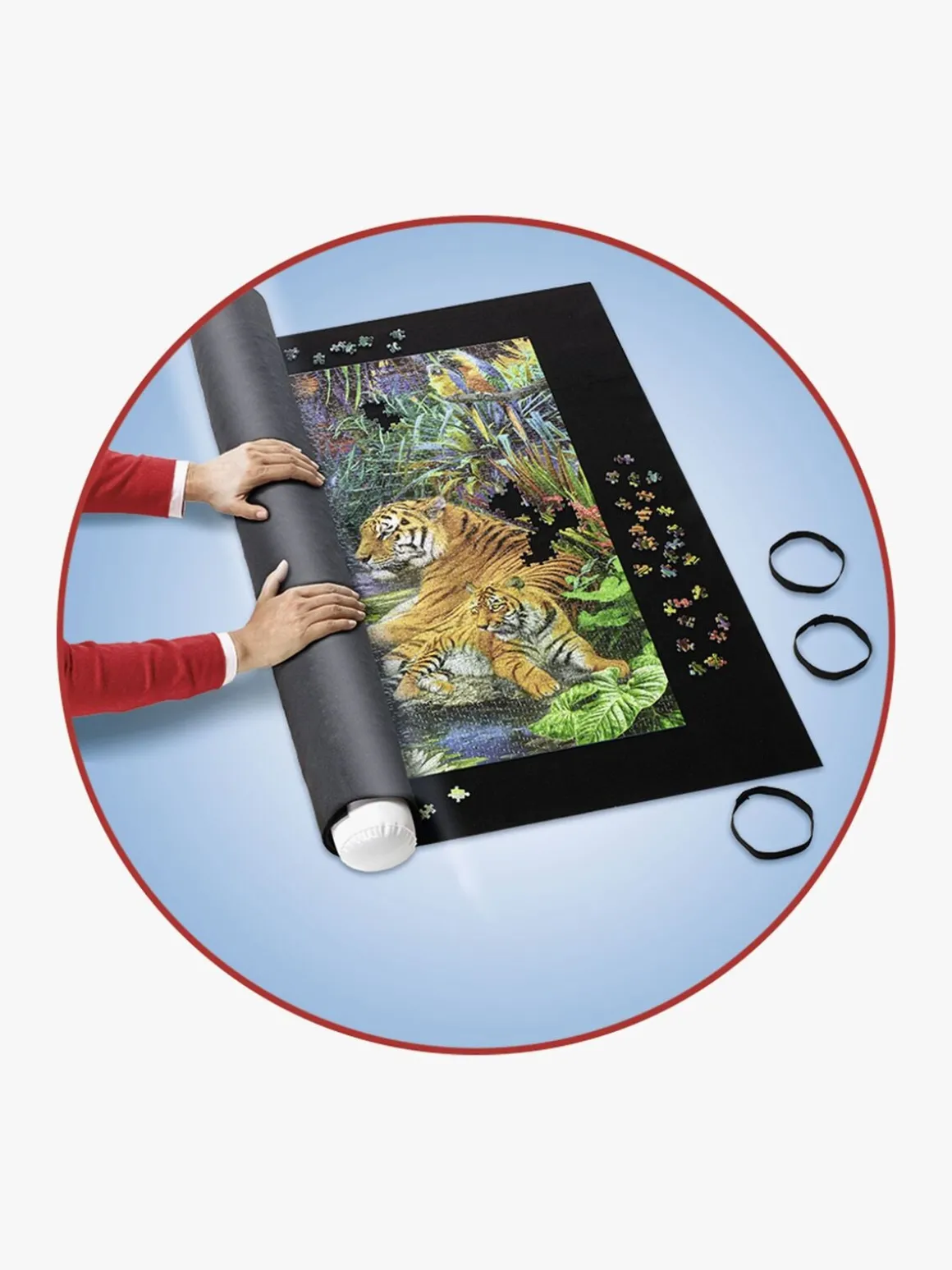 Indhold: Filtmåtte med skridsikker belægning, oppusteligt rør og tre gummielastikker.