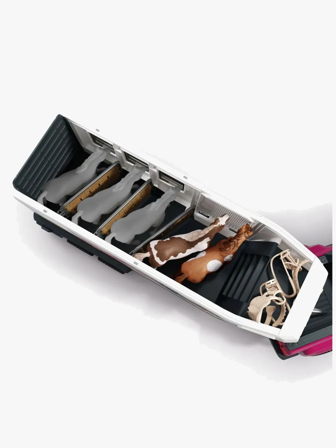 – Indeholder: 1 bil, 1 anhængervogn, 2 figurer, 2 heste, 1 hund.