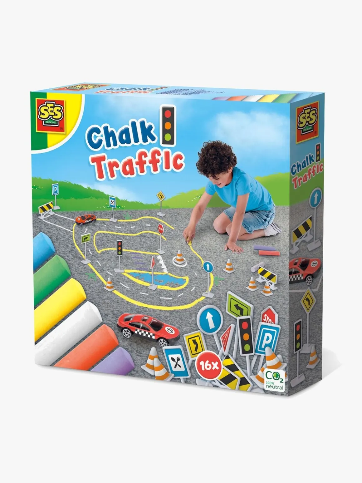 – Lav dine egne veje med kridtene og det medfølgende trafiktilbehør.