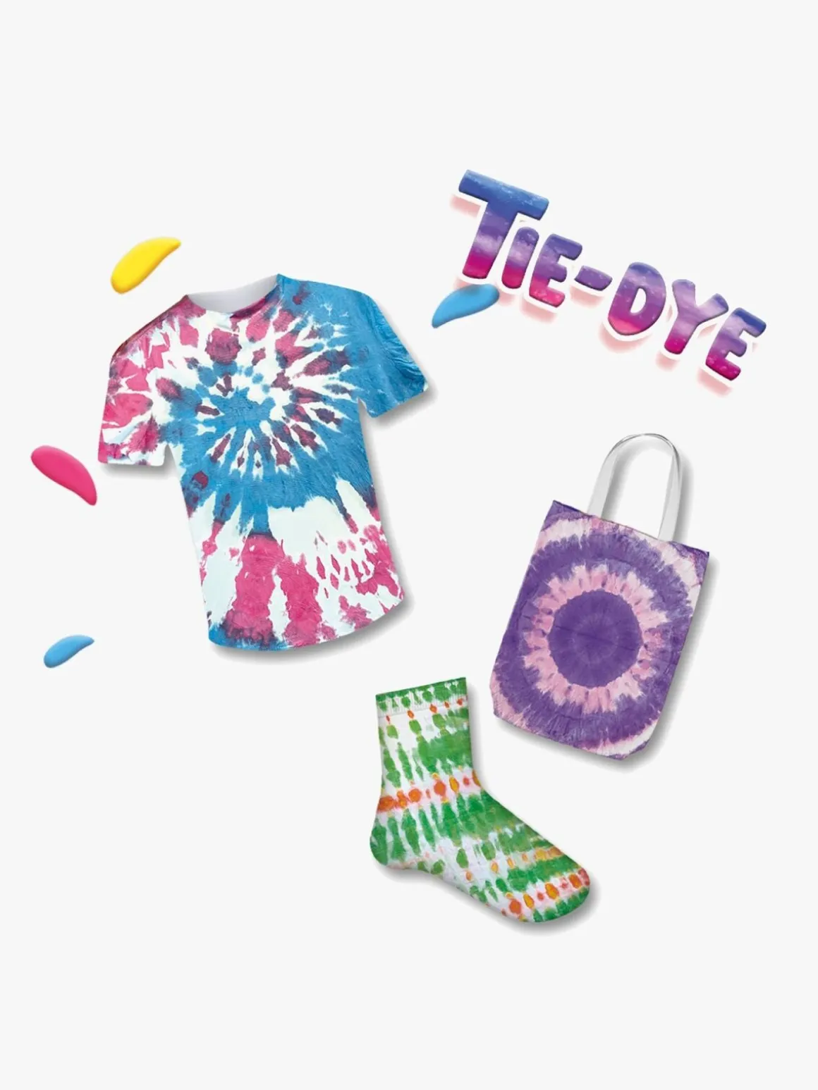 – Med dette tekstilfarvesæt kan du dekorere fx sokker, bukser, bluser, tasker eller pudebetræk. Rul, krøl eller fold stoffet sammen, sæt dem fast med nogle elastikker, og så er du klar til at farve det.