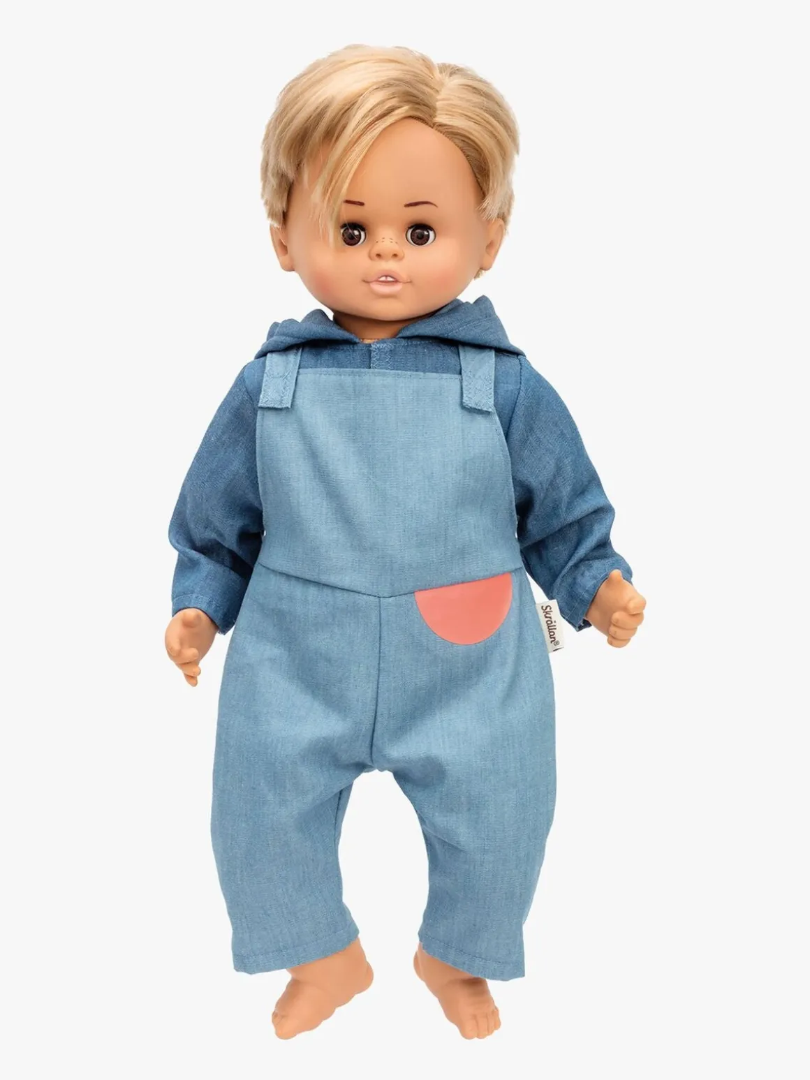 Dukken er fremstillet i bomuld og polyester, og den lukker automatisk øjnene, når du lægger den på ryggen. Plastikdelene i dukken er fremstillet af PVC, fri for ftalater og bisfenol.