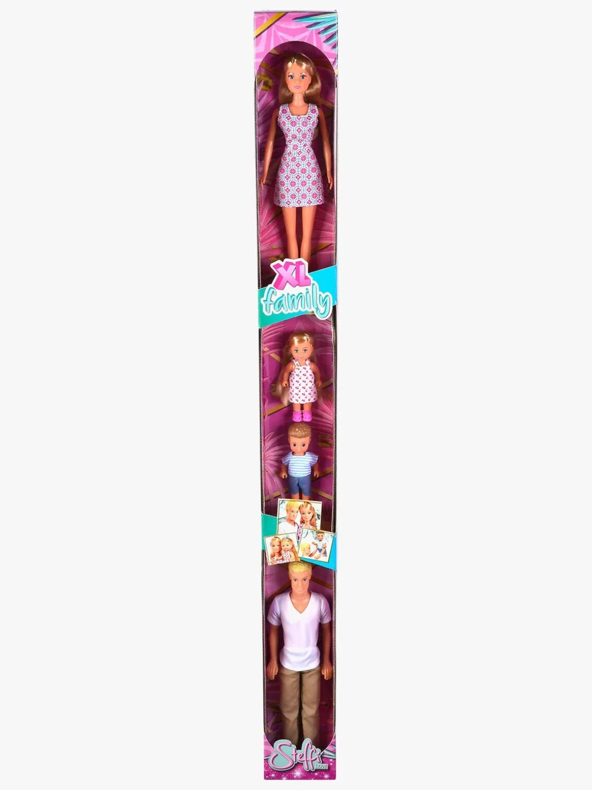 Steffi Love Familieæske indeholder hele Steffi-familien: Mor, far, datter og søn.