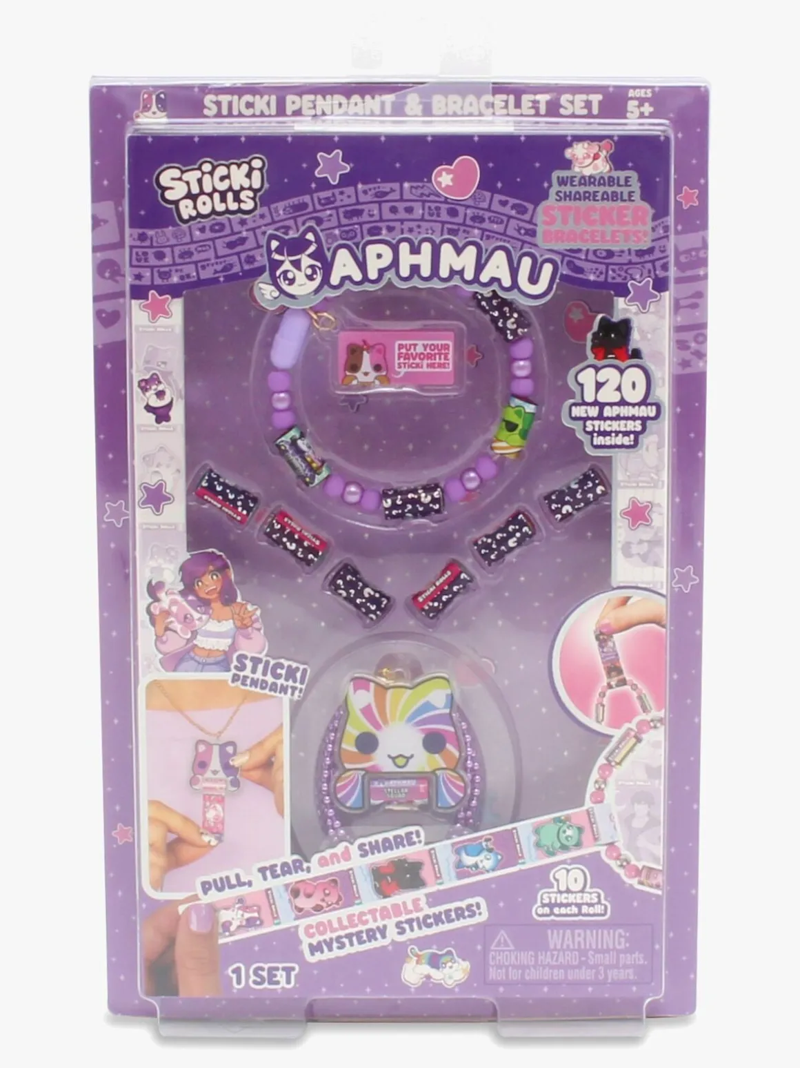 – Indeholder: 120 klistermærkeruller, 1 armbånd med 18 perler, 1 halskæde, 1 nøglebrik, 1 samlerguide, 1 Aphmau Sticki side.