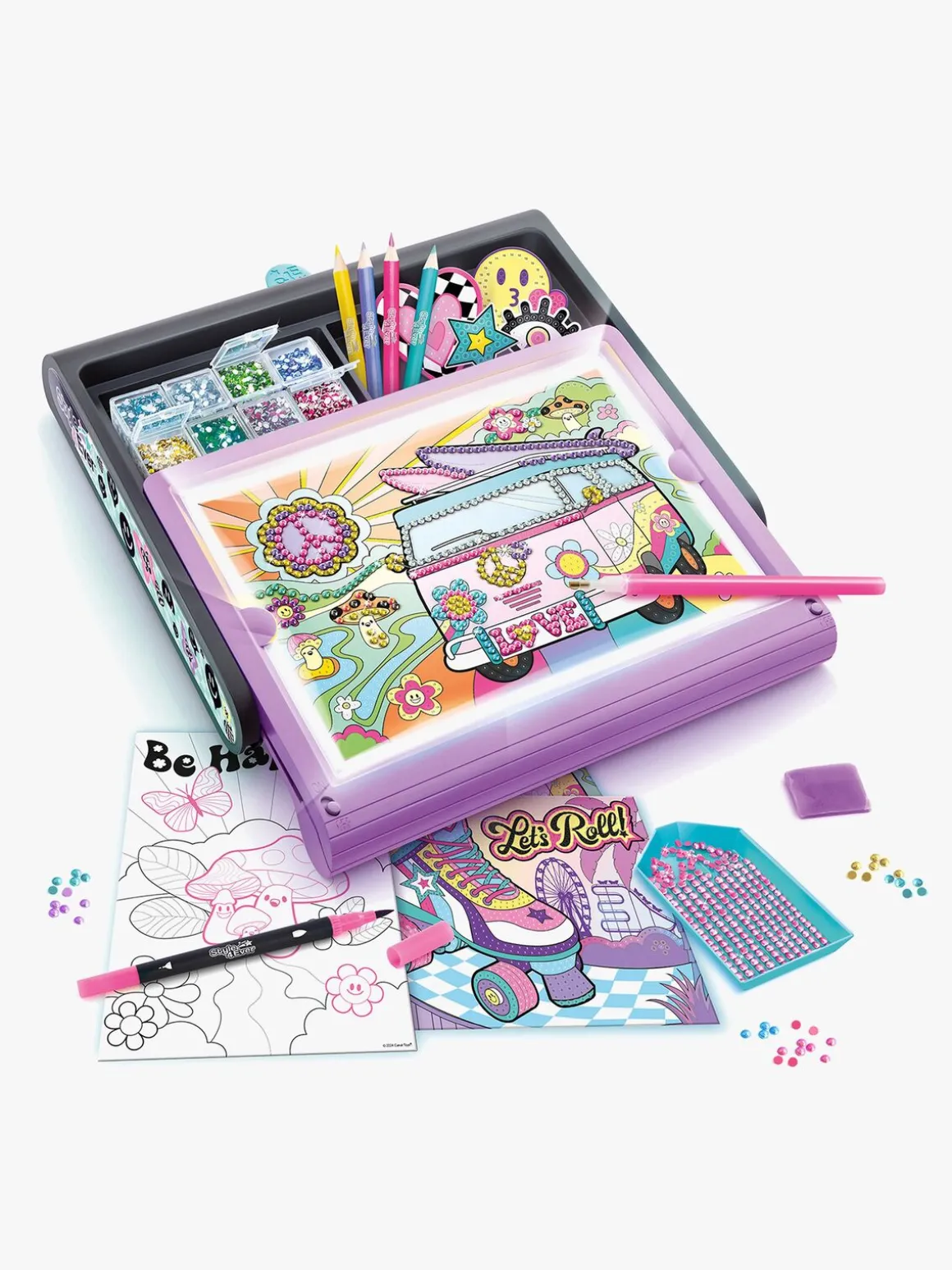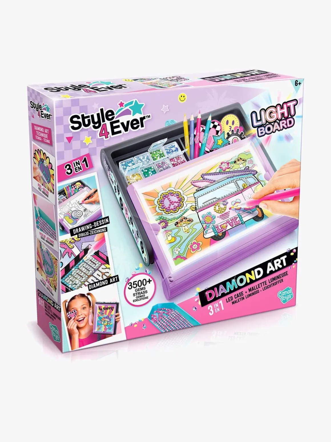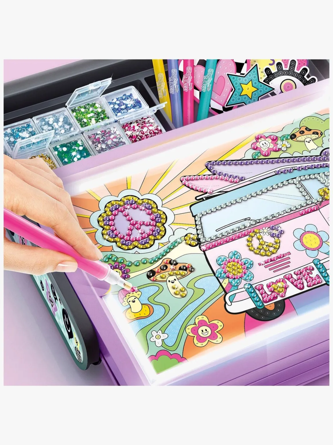 – Indeholder: 3.500 ædelstene, 1 LED-tavleæske, rhinestone-poser, opbevaringspotter, 1 rhinestone-pen, 1 viskelæder, 1 rhinestone-plade, diamantklistermærke, etiketter, hvide plakater, hvide papirer, 6 farvepenne.