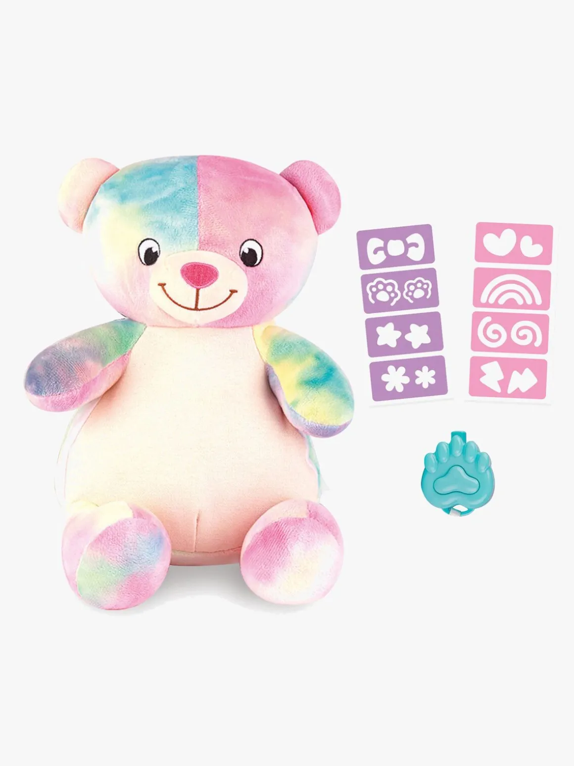 – Skab magiske mønstre på din farverige bamse med lyspennen og de medfølgende klistermærker.