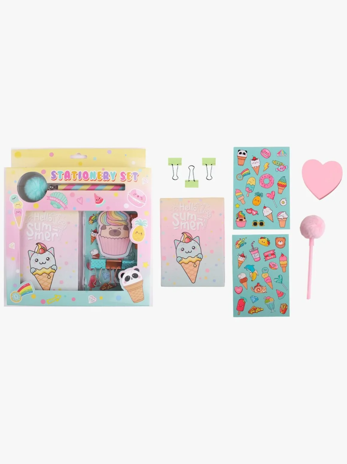 – Indeholder: 1 notesblok, 1 blyant, 3 klemmer, 2 klistermærkeark.