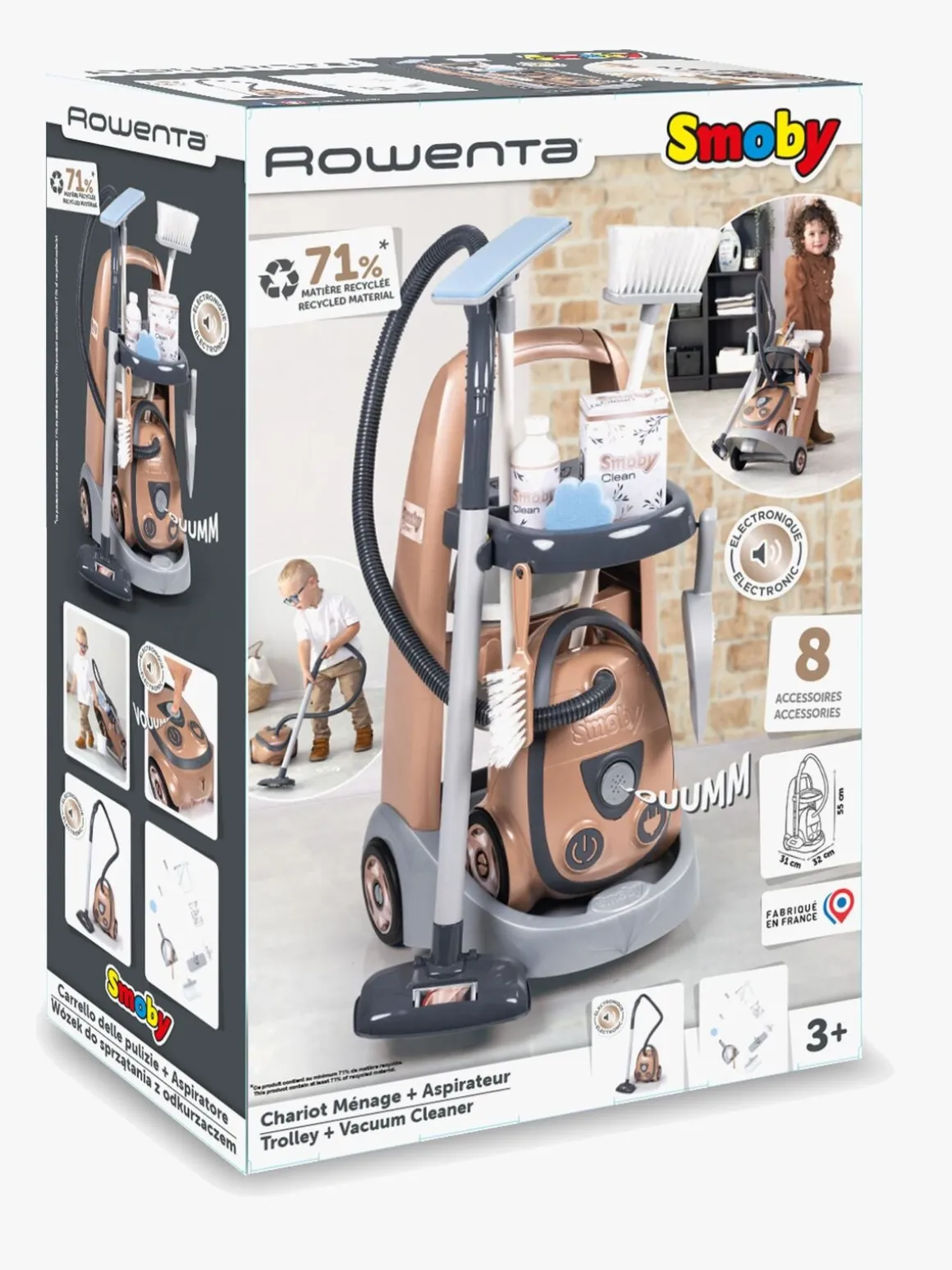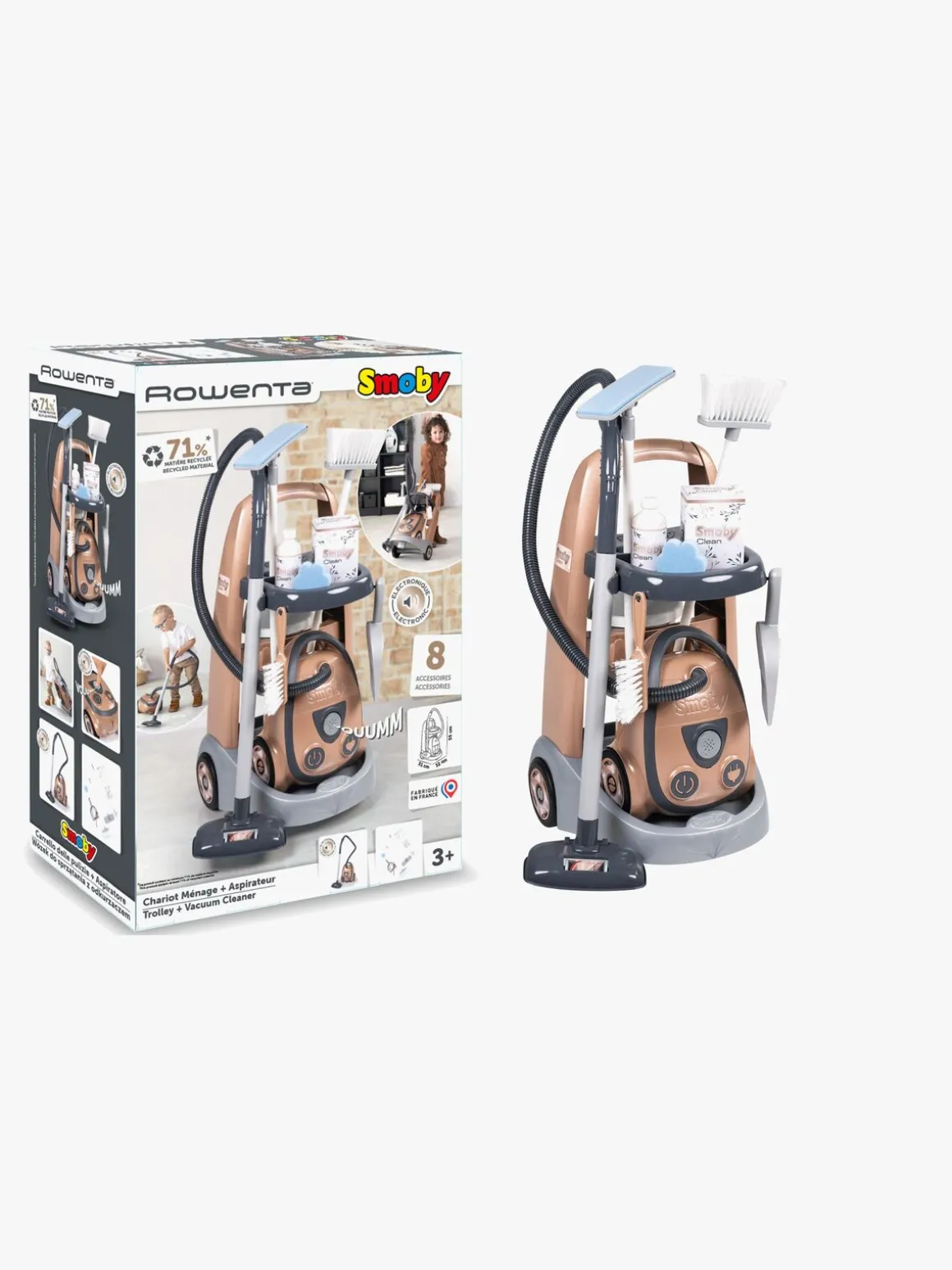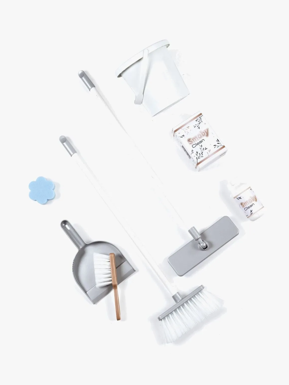– Indeholder: 1 rengøringsvogn, 1 støvsuger, 1 kost, 1 børste, 1 skovl, 1 moppe, 1 flaske, 1 boks, 1 svamp, 1 spand.