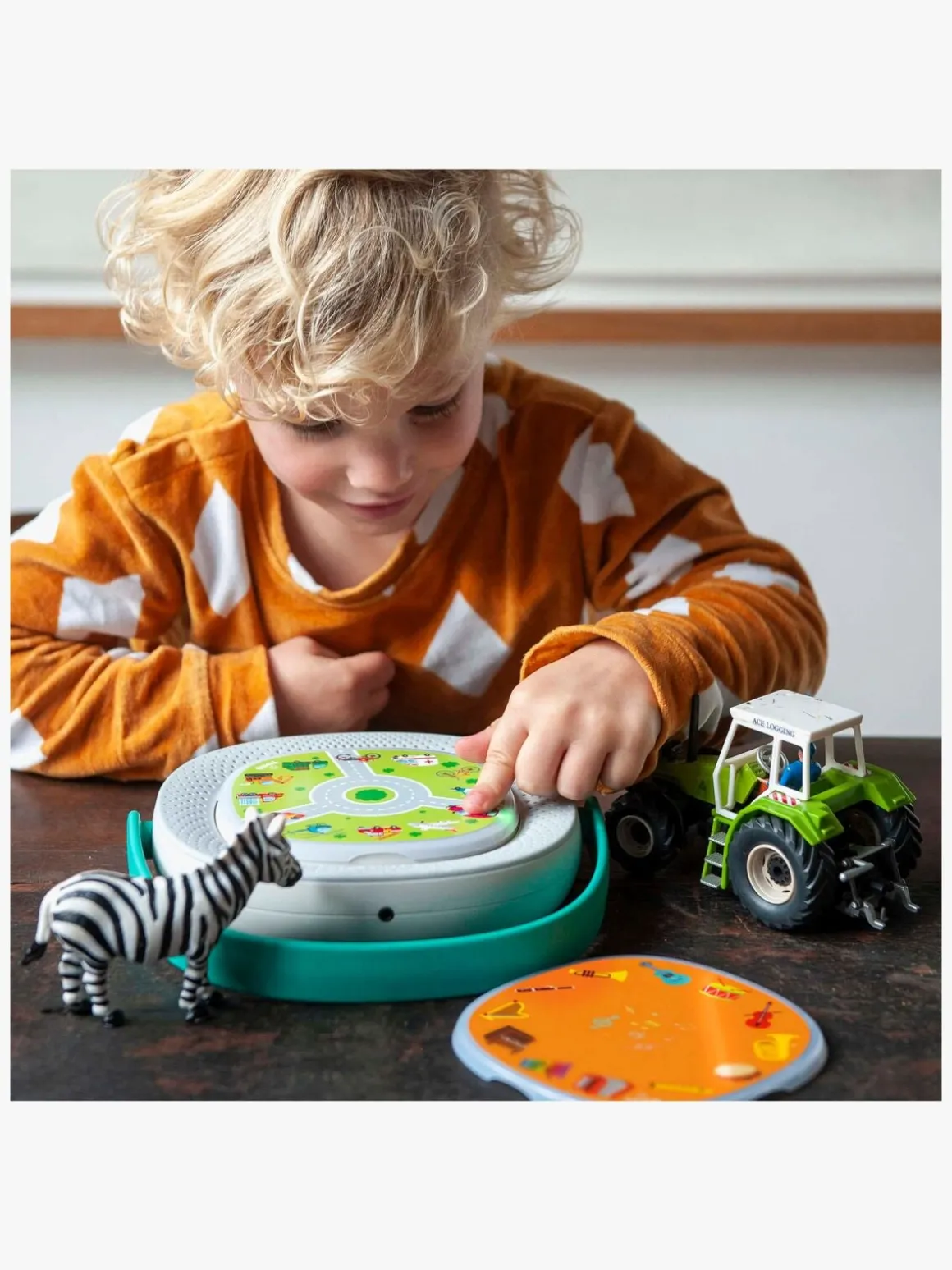 – Indeholder: 1 interaktiv lydafspiller, 1 oplader, 5 skiver, 1 opbevaringspose.