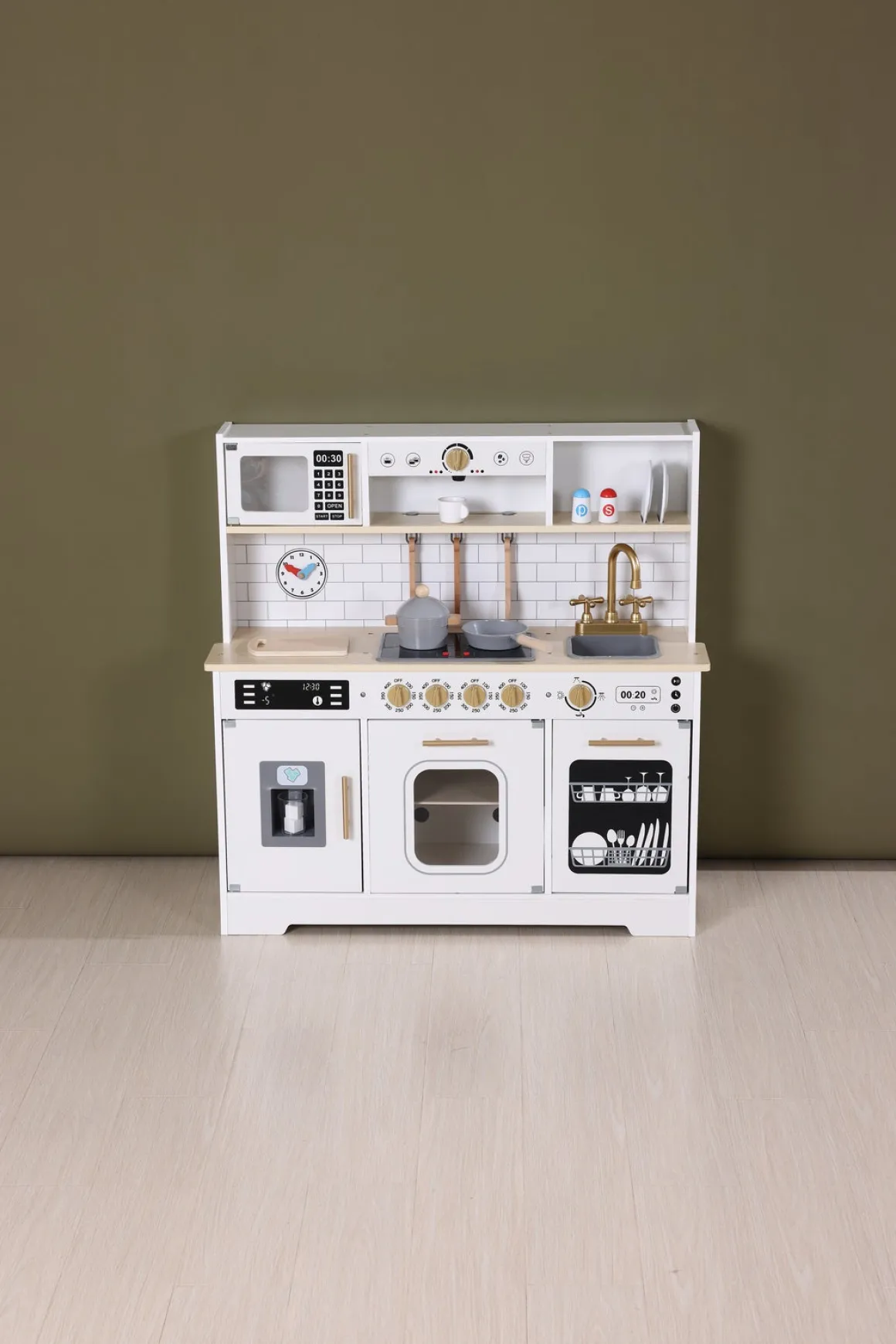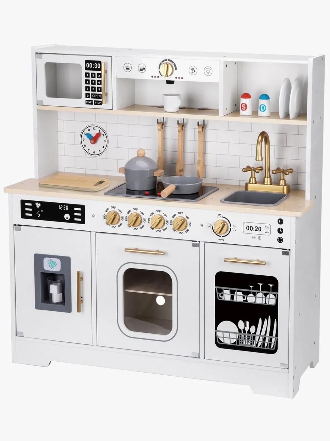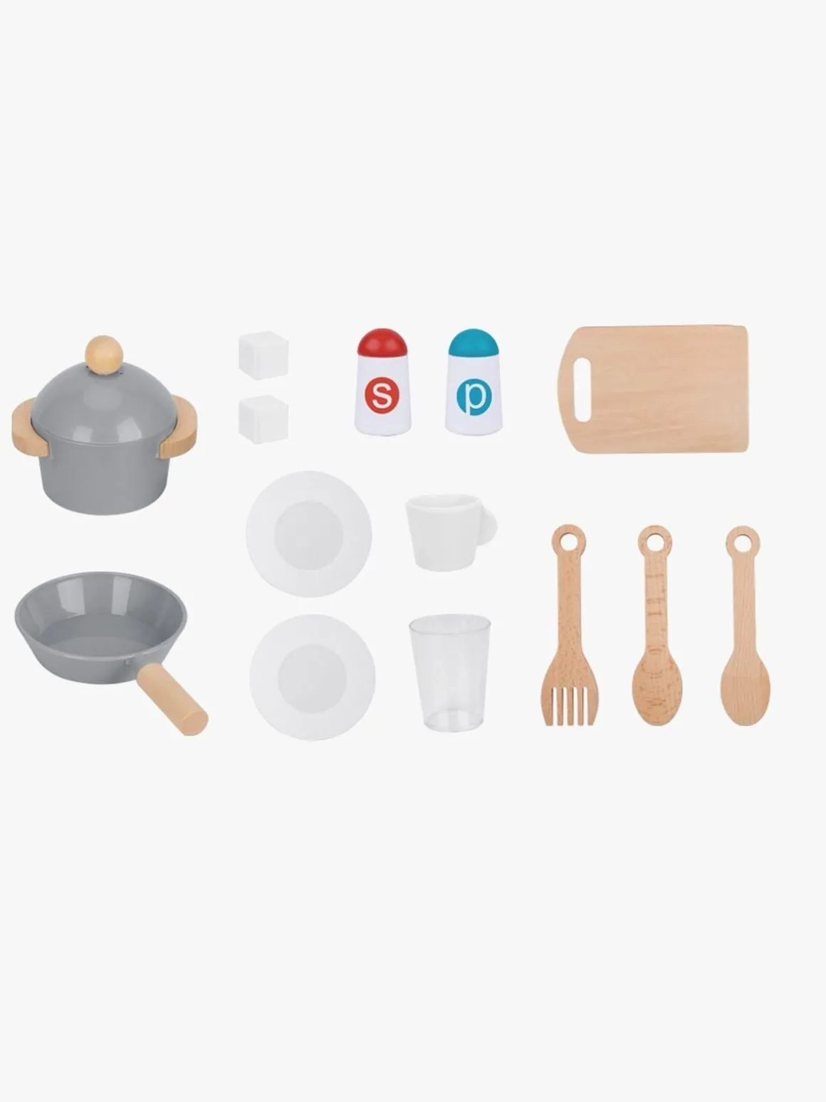 – Indeholder: 1 legekøkken, 1 gryde, 1 stegepande, 2 grydeskeer, 1 paletkniv, 1 skærebræt, 1 skål, 1 salatskål, 1 peberkværn, 1 kaffekop, 1 glas.