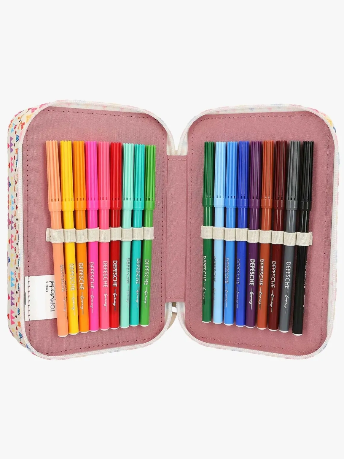 – Indeholder: 18 farveblyanter, 18 filttusser, 1 viskelæder, 2 blyanter, 1 saks, 1 limstift, 1 lineal, 1 blyantspidser.