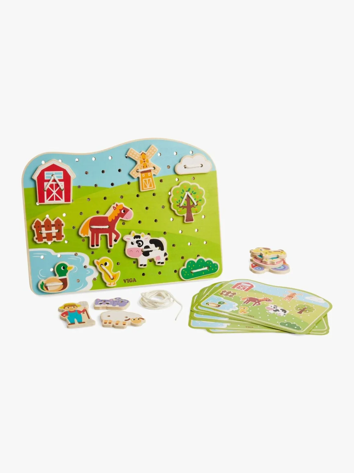 – Placér figurene på brættet og sæt dem fast med snoren.