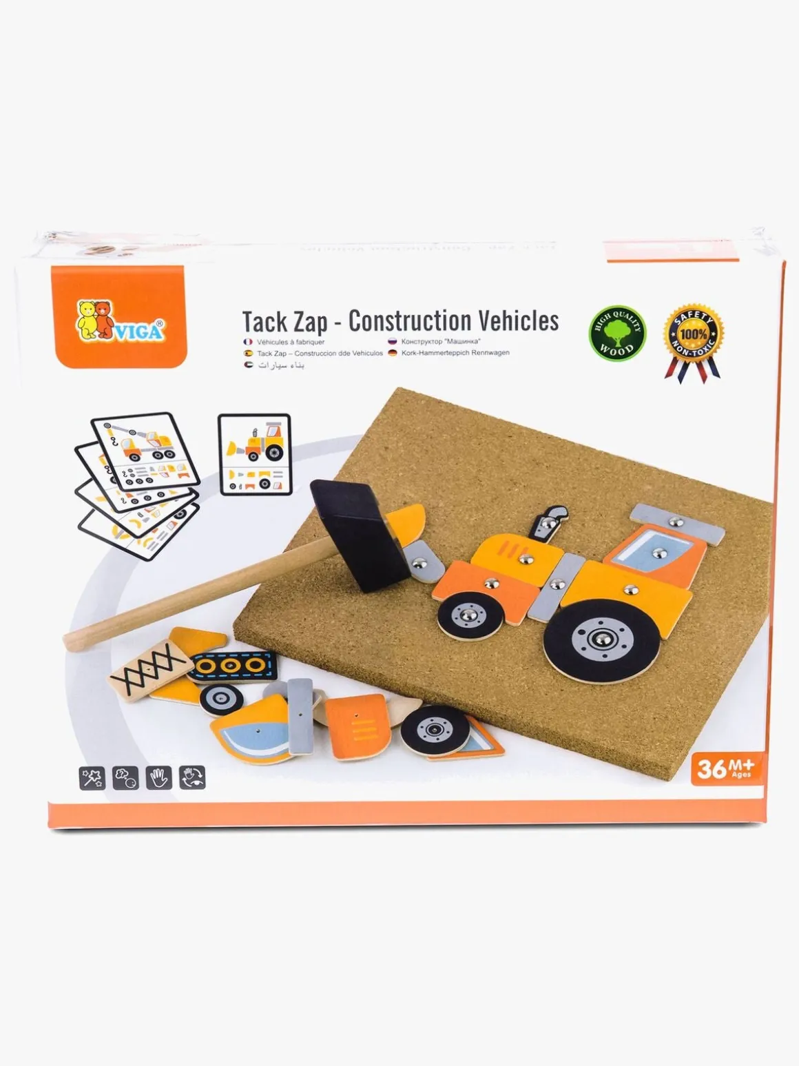 Indeholder: hammer, korkplade, søm, 45 stykker træ, 5 instruktionskort til 10 forskellige modeller.