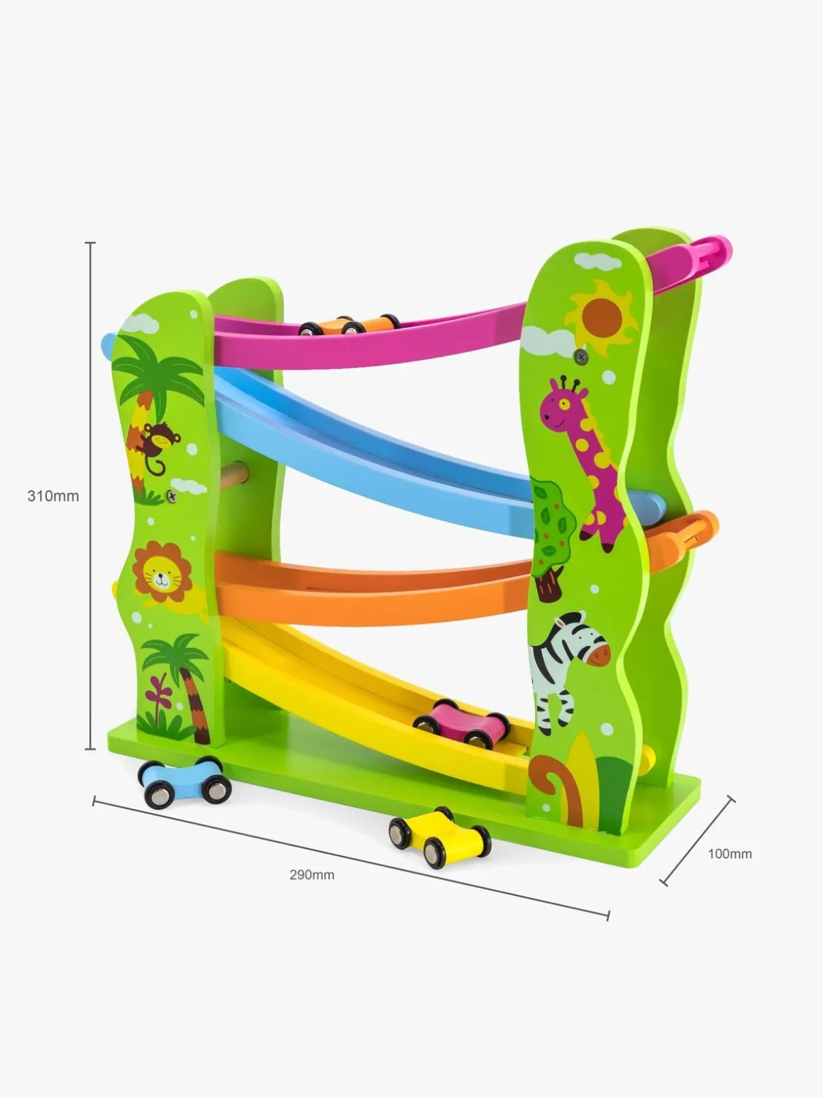 – Placer bilerne øverst, og se dem køre og flippe ned ad racerbanen.