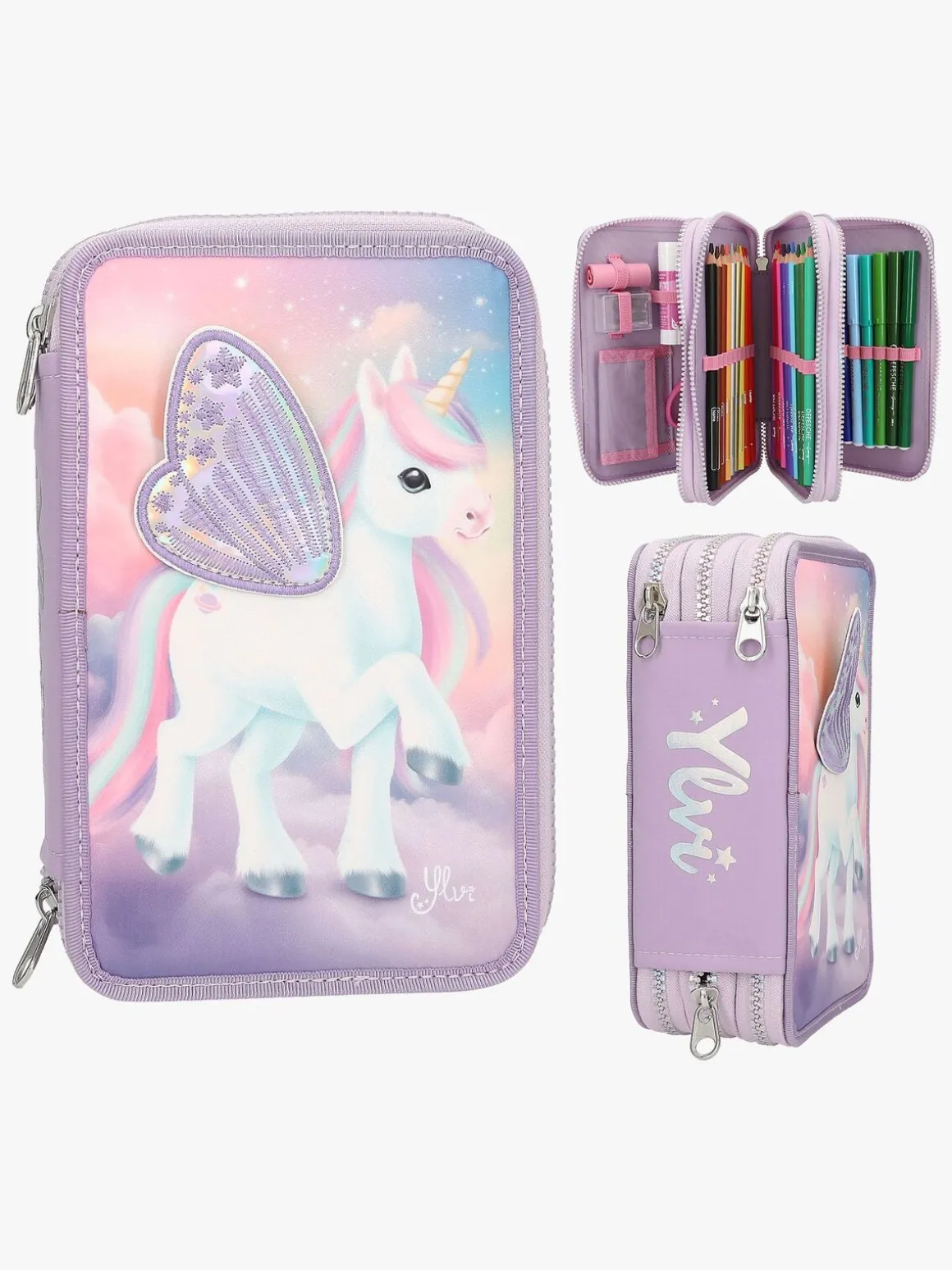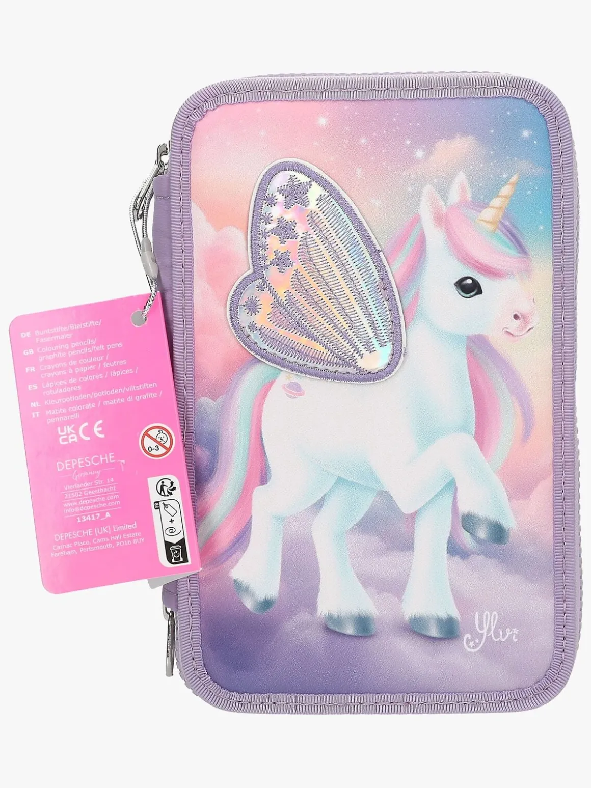 – Indeholder: 1 penalhus, 18 farveblyanter, 18 tusser, 2 blyanter, 1 saks, 1 limstift, 1 blyantspidser, 1 lineal, 1 viskelæder.