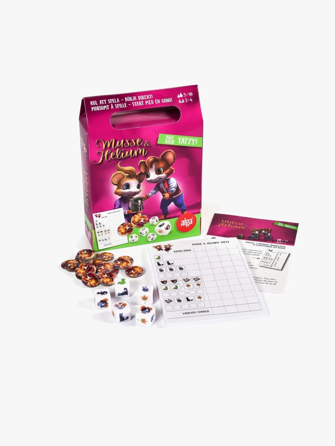 – Indeholder terninger, protokolblokke, guldostebrikker og regler.