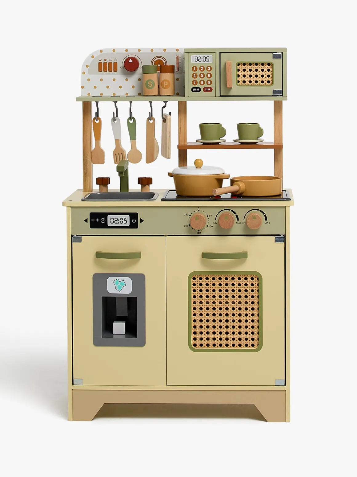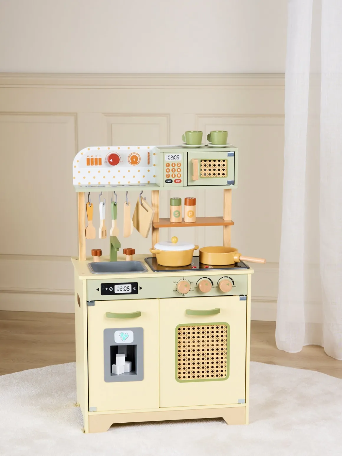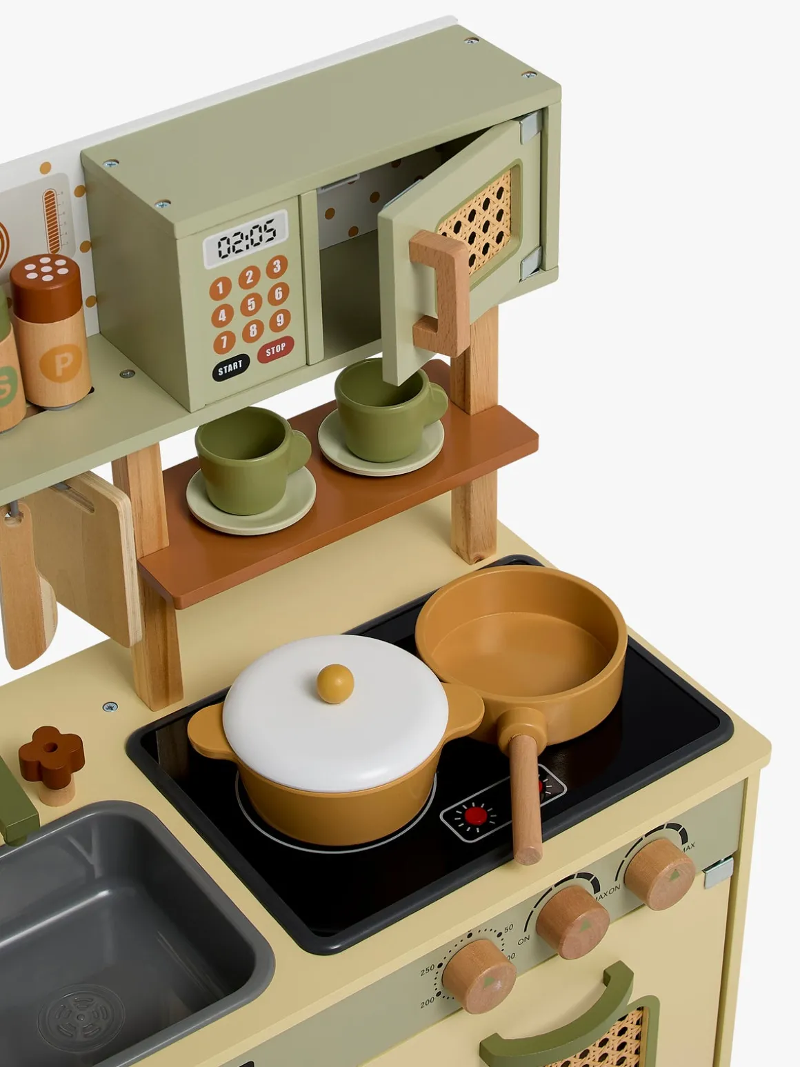 – Indeholder: 1 legekøkken, 1 kasserolle, 1 stegepande, 1 salatskål, 1 peberkværn, 5 køkkenredskaber, 2 tallerkener, 2 kopper.