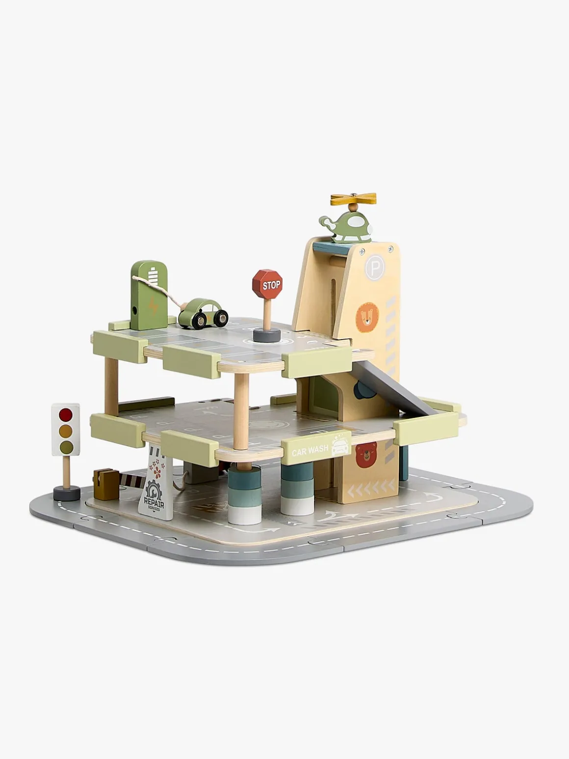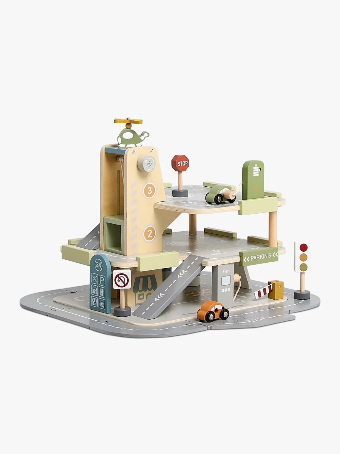 – Indeholder: 1 parkeringshus, 11 vejdele, 4 biler, 1 helikopter, 1 ladestation, 3 vejskilte.