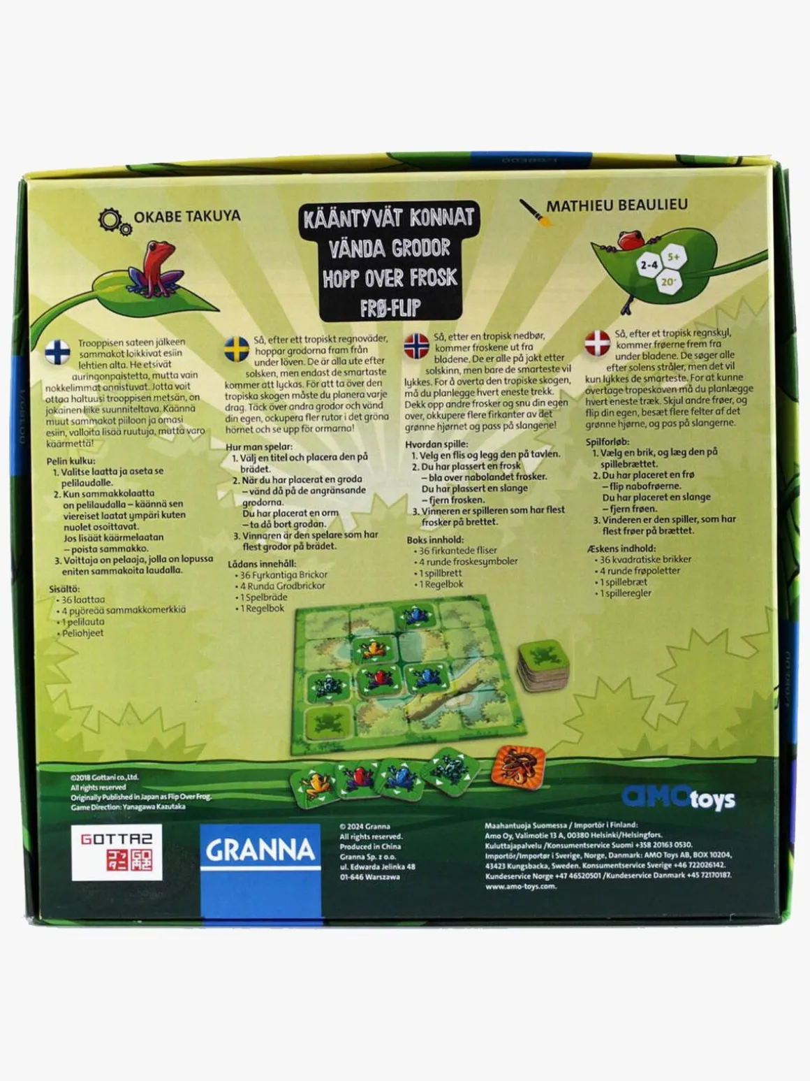 – Indeholder: 36 spillebrikker, 4 runde frøbrikker, 1 spillebræt og 1 regelbog.