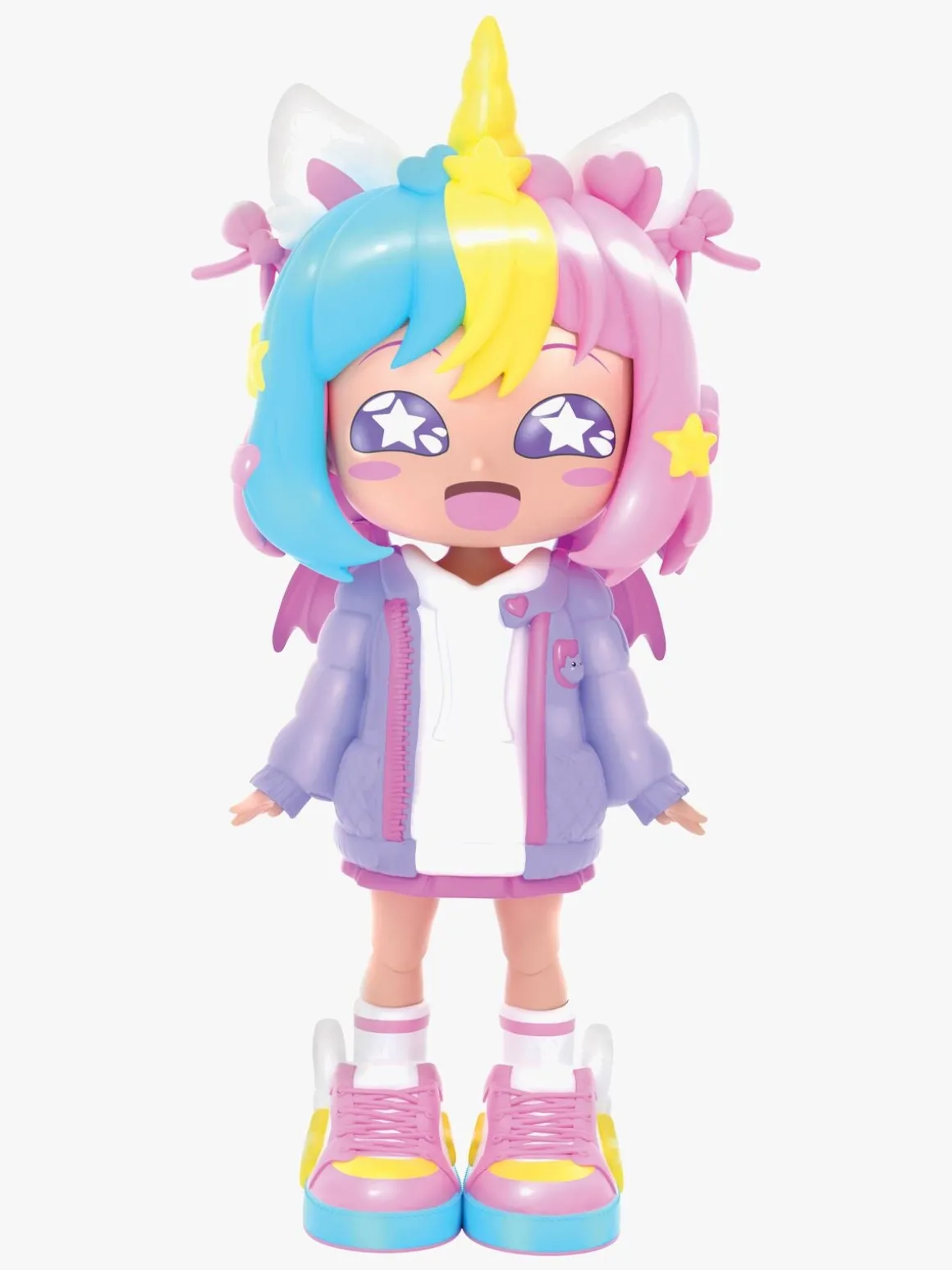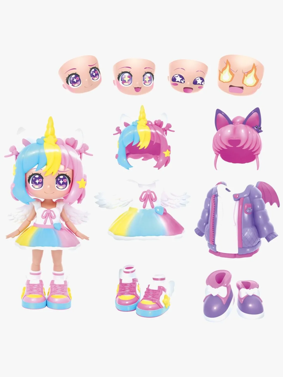 – Indeholder: 1 dukke, 4 ansigter, 2 frisurer, 2 outfits, 2 par sko.