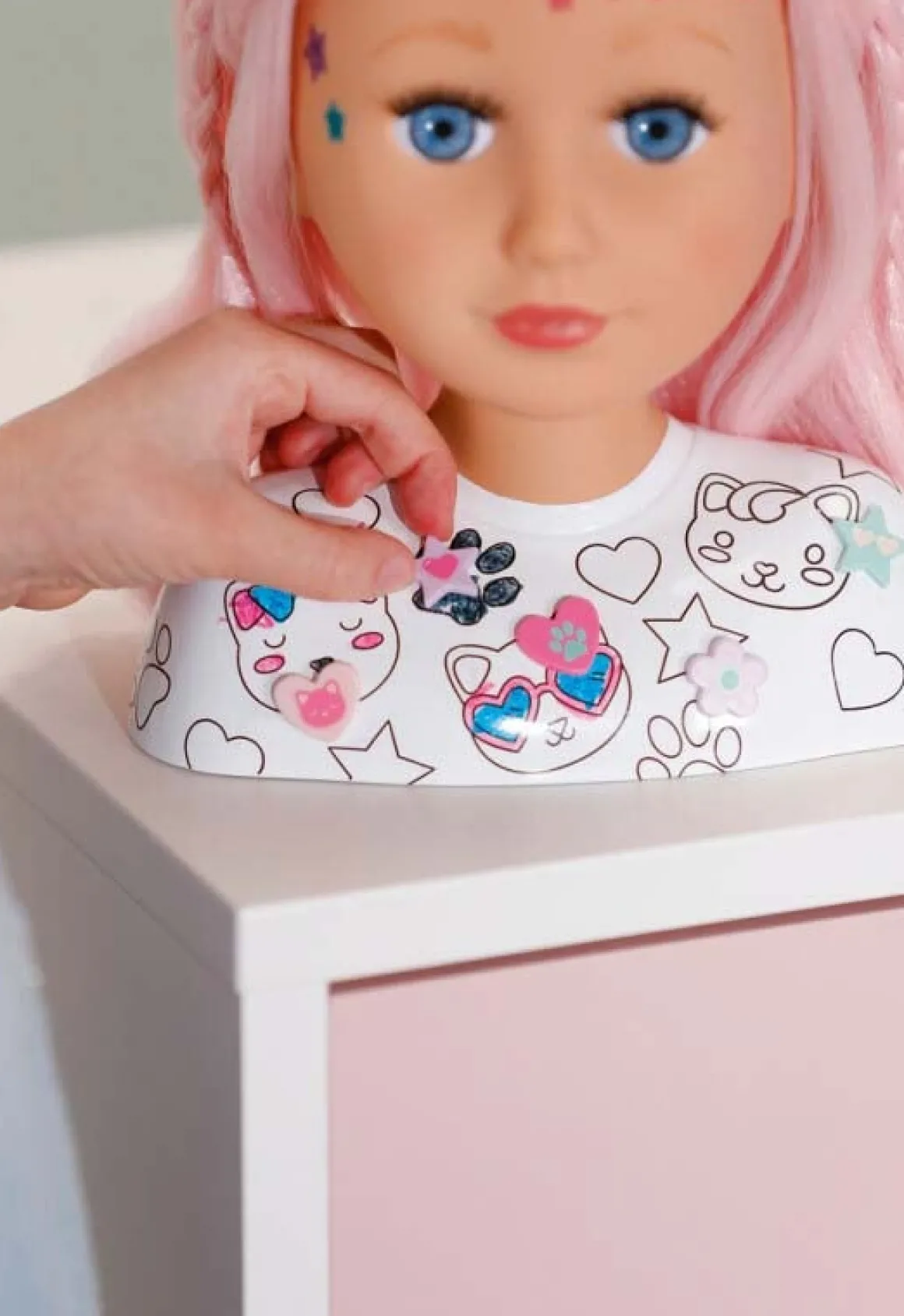 – Indeholder: 1 frisør- og sminkedukke, 4 tusser, 1 skabelon, 1 kam, 1 hårbånd, 10 vedhæng, 4 hårklemmer, 2 hårelastikker.