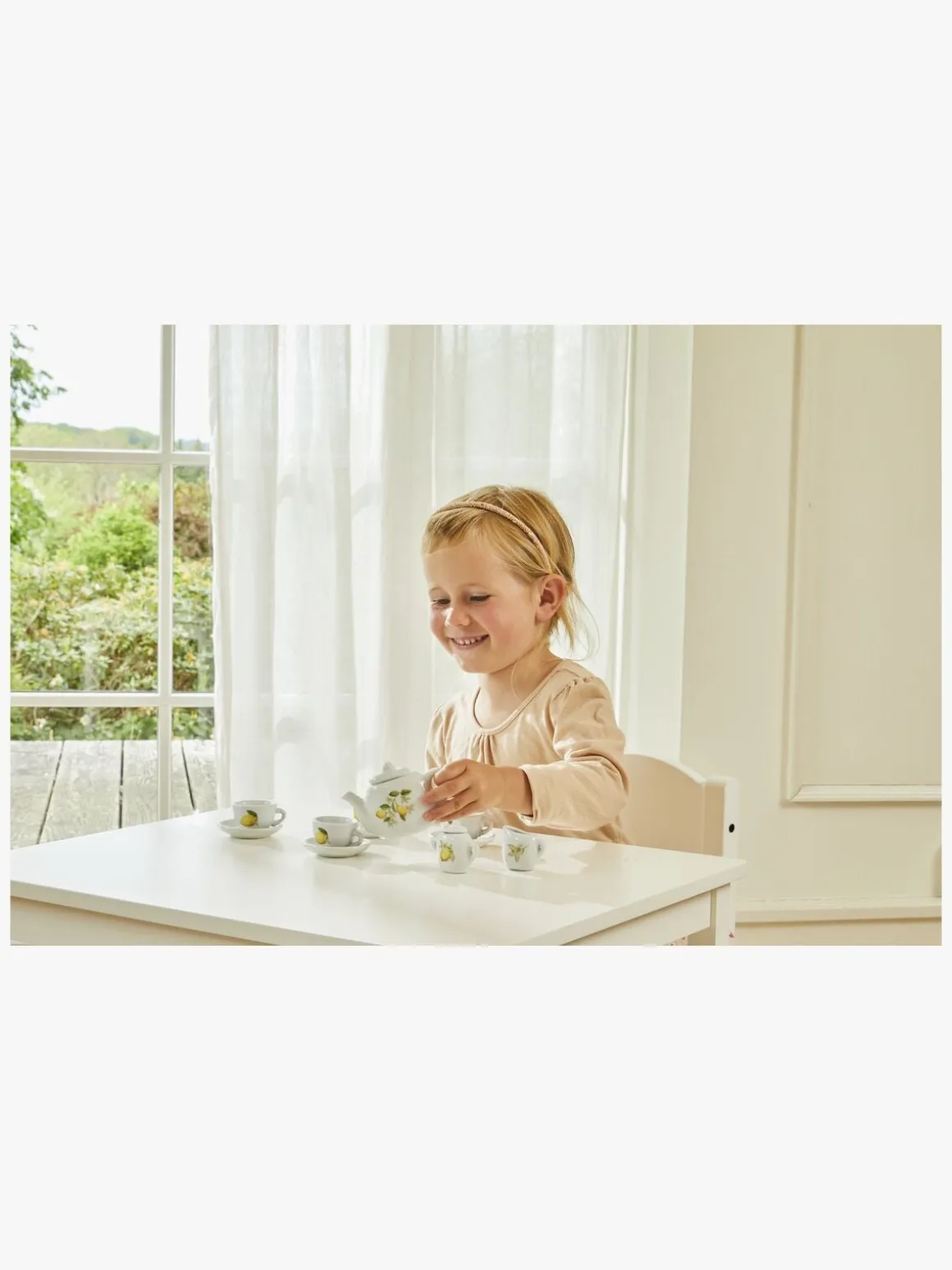 – Indeholder: 1 tepotte, 4 tekopper med en underkop, 1 mælkekande, 1 sukkerskål.