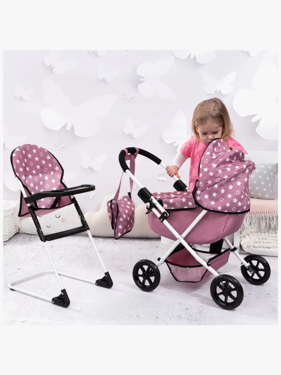 – Indeholder: 1 dukkevogn, 1 pusletaske, 1 højstol.