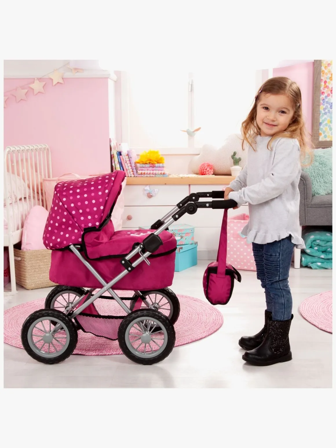 – Indeholder: 1 dukkevogn, 1 pusletaske.