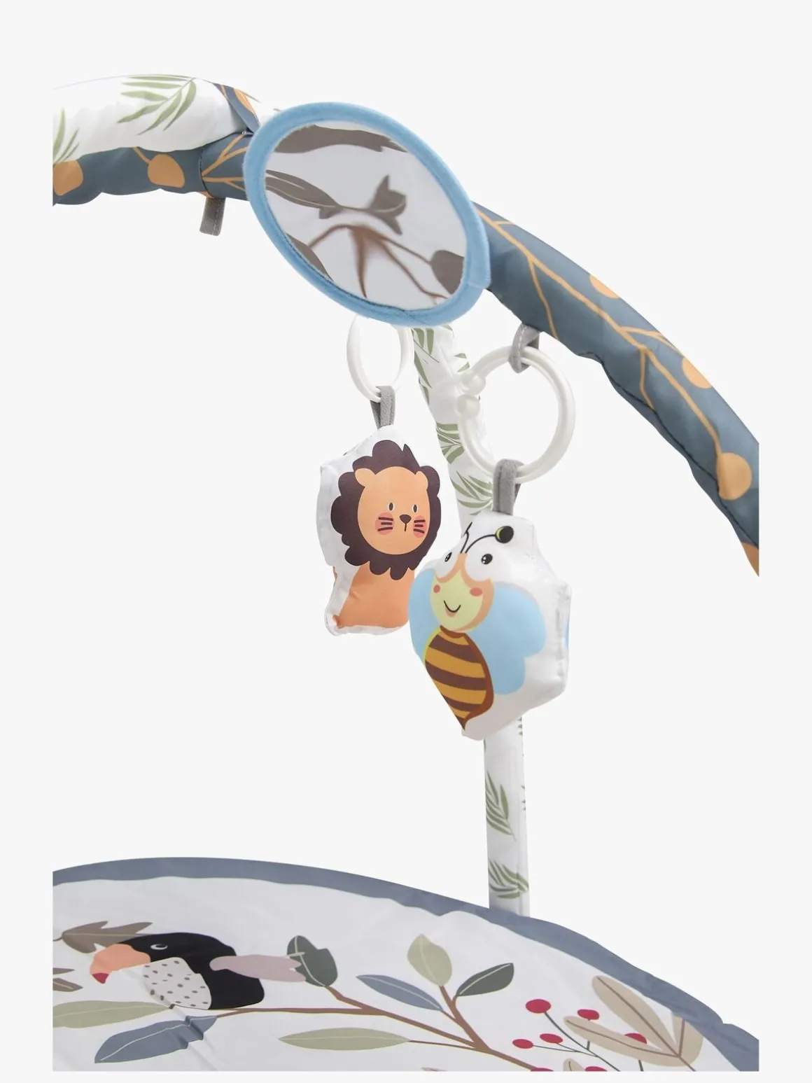 – Sjove farver og et spejl til visuel stimulering.