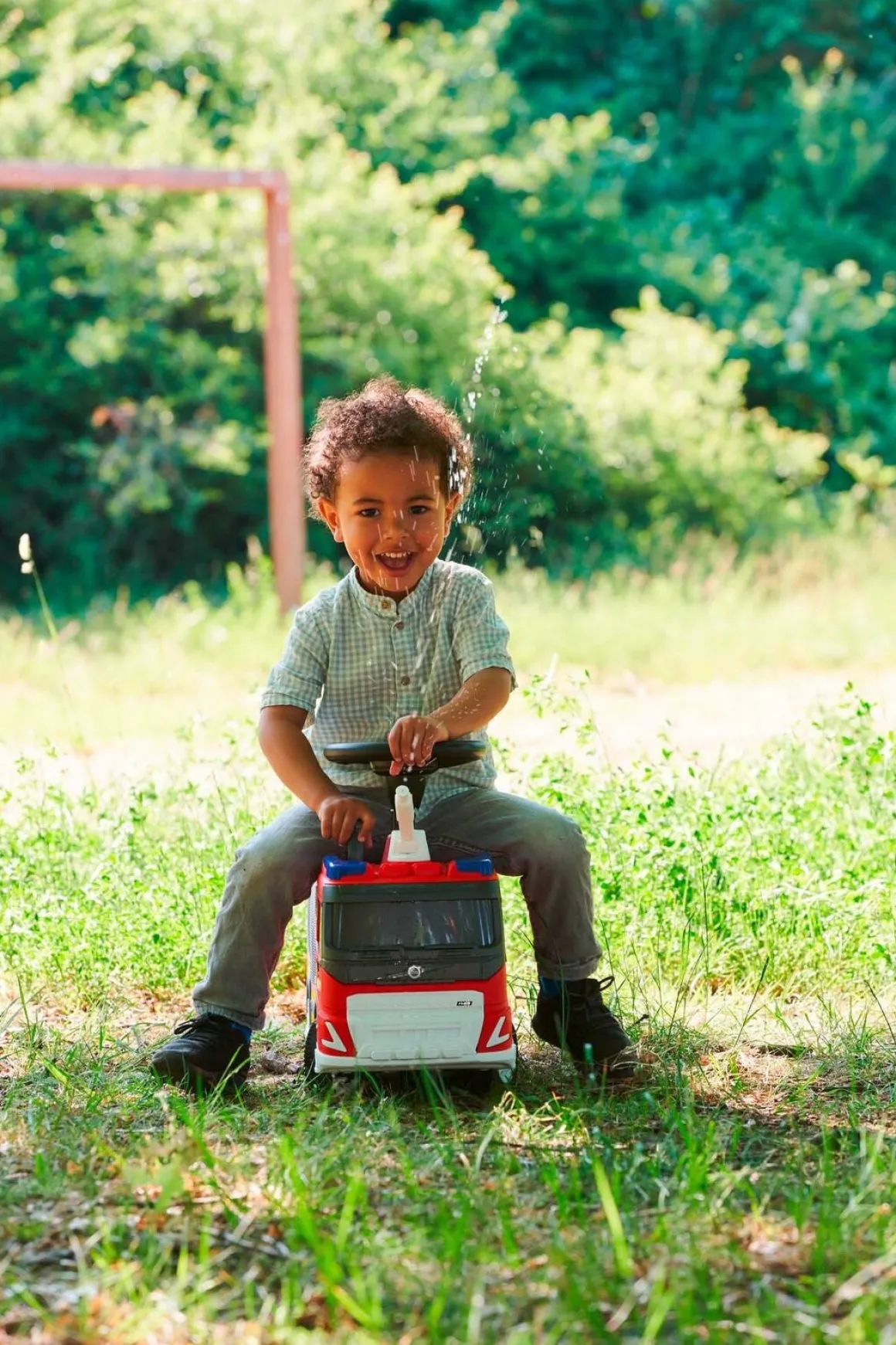 – Indeholder en vandslange, der kan sprøjte med vand.