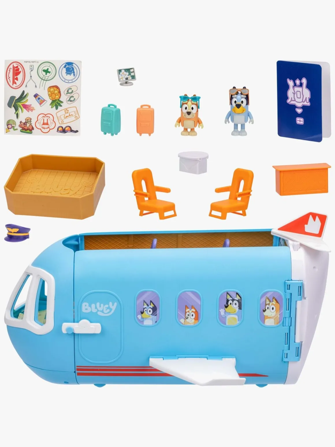 – Indeholder: 1 flyvemaskine, 1 Bluey-figur, 1 Bingo-figur, 15 tilbehør.