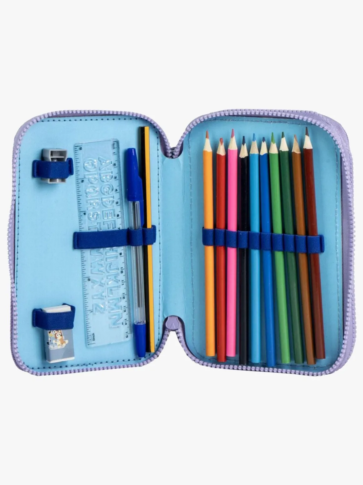– Indeholder: 1 penalhus, 10 farveblyanter, 14 filttusser, 1 viskelæder, 1 blyantspidser, 1 kuglepen, 1 blyant, 1 lineal.