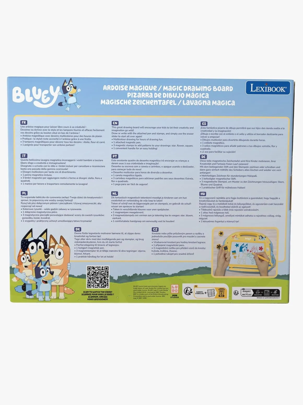 – Tegn med den magnetiske pen, eller lav sjove kunstværker med stemplerne.