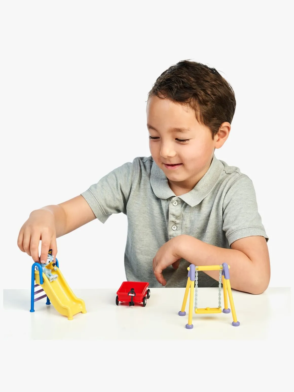– Indeholder: 1 figur, 1 gyngestativ, 1 rutsjebane, 1 vogn.