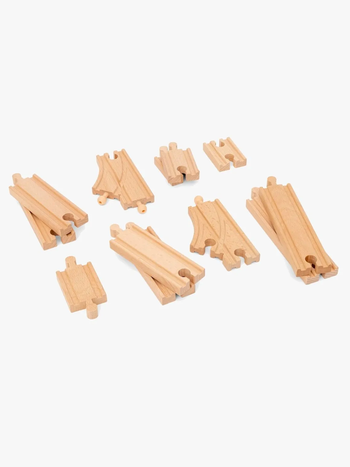 – Kombiner lige skinner i forskellige længder, sporskifter og beslag.