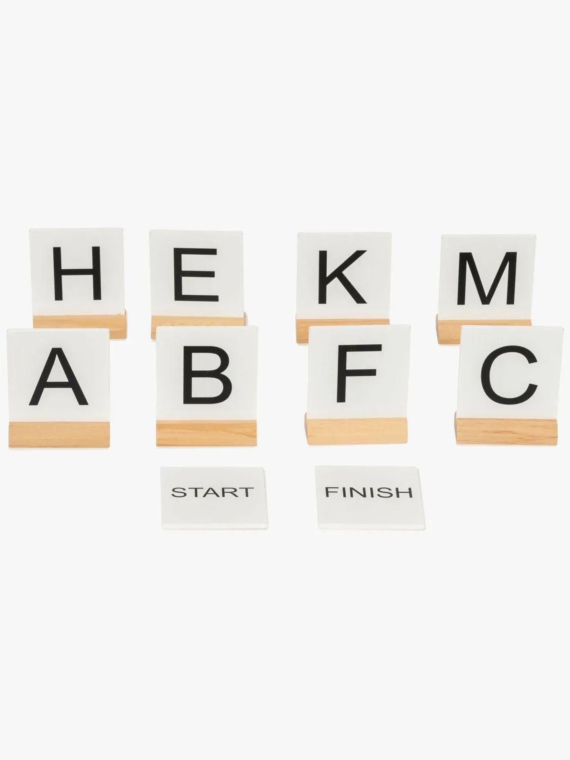 – Hver markør er dobbeltsidet med bogstaver (A-F) på den ene side og tal (1-15) på den anden.