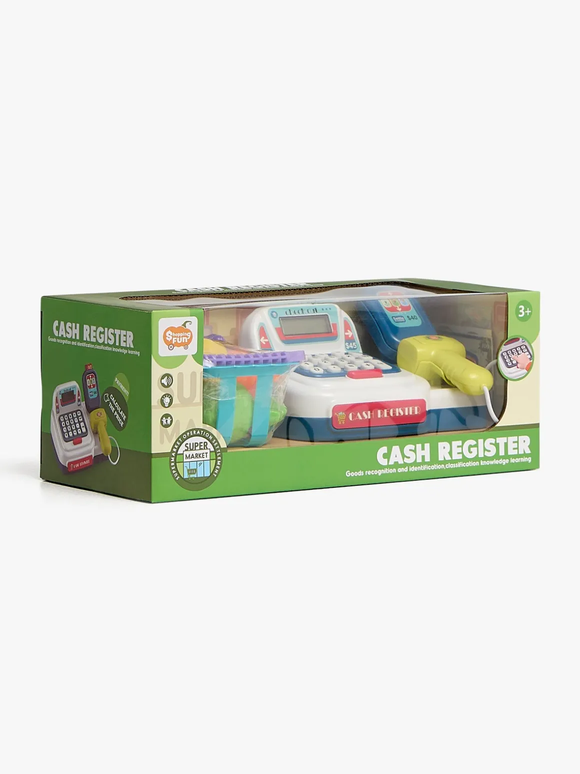 – Indeholder: Et kasseapparat, en kortlæser, mønter, sedler og en masse andet spændende tilbehør.